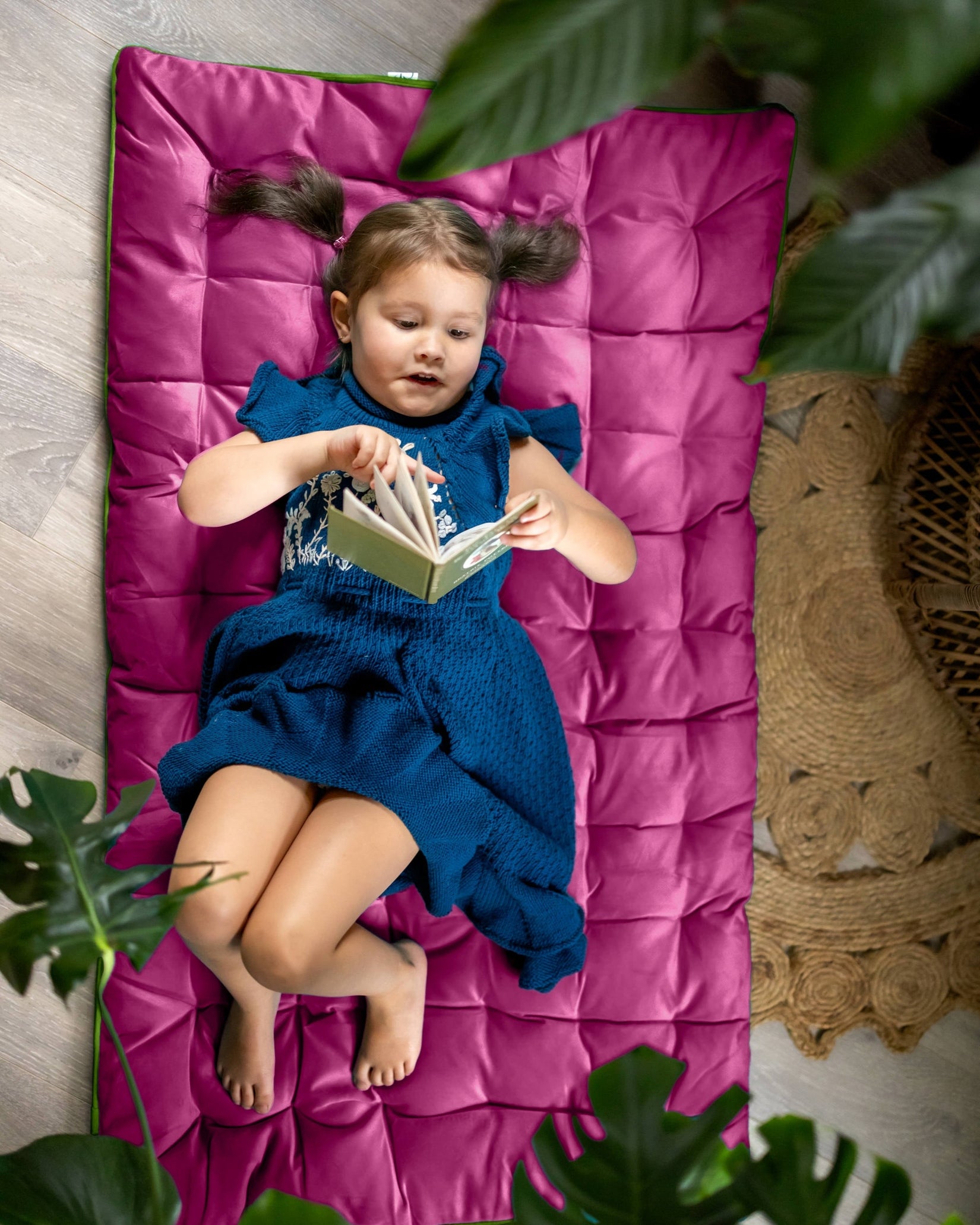 Surround your child with their favorite pile-up pillows to build a soft sanctuary of rest and relaxation. Inspire your child to dream up new, imaginative worlds while creating a comfy spot to let their minds wander. Add a blanket or our tent overtop your triangle and watch them snuggle in.