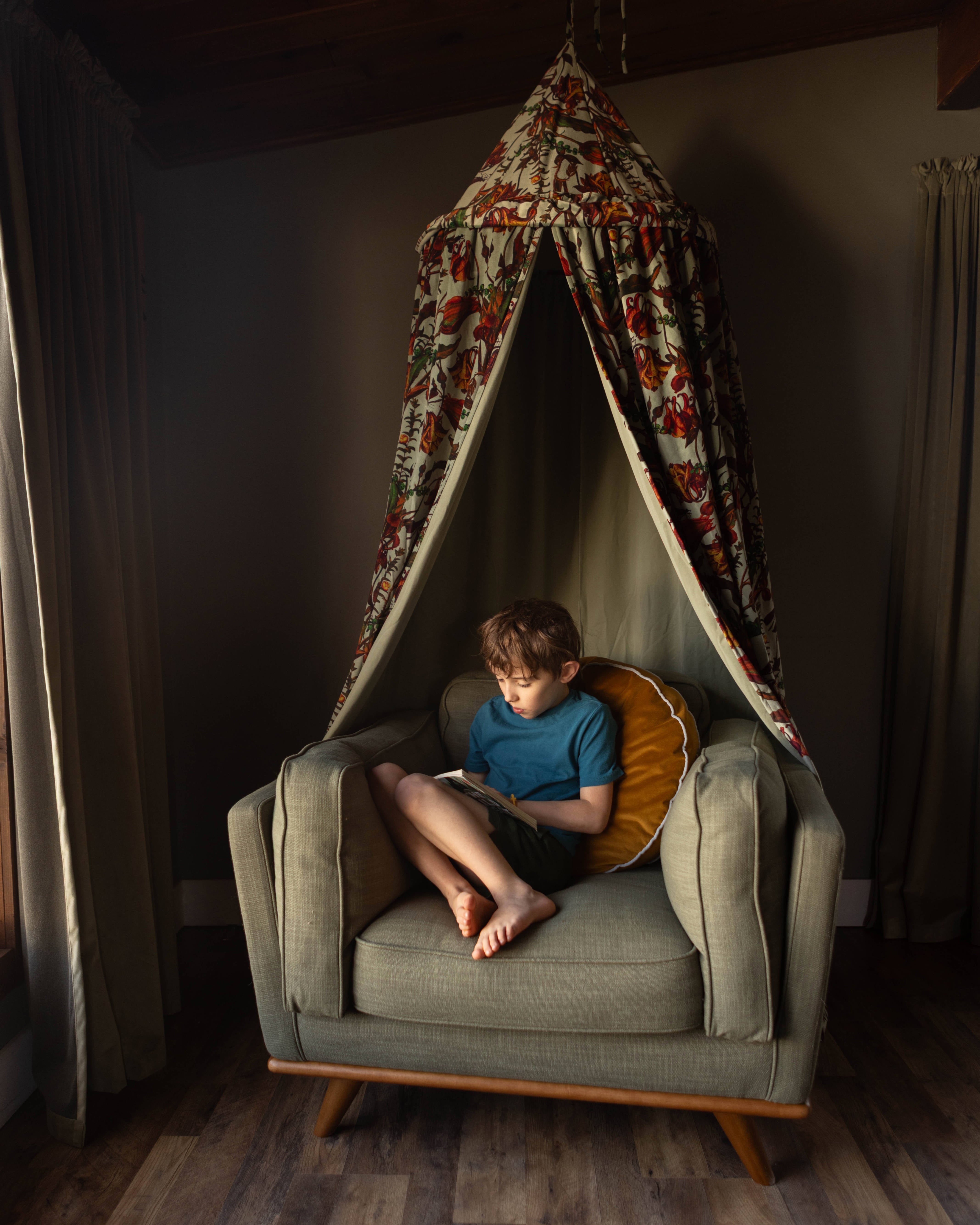 Transform your child's playroom into a fairy-tale dream with the Bellamy Velvet Canopy. Crafted with opulent velvet, this canopy adds a touch of elegance and creates a serene reading nook or whimsical play area. Elevate their space with this sophisticated and stunning addition.