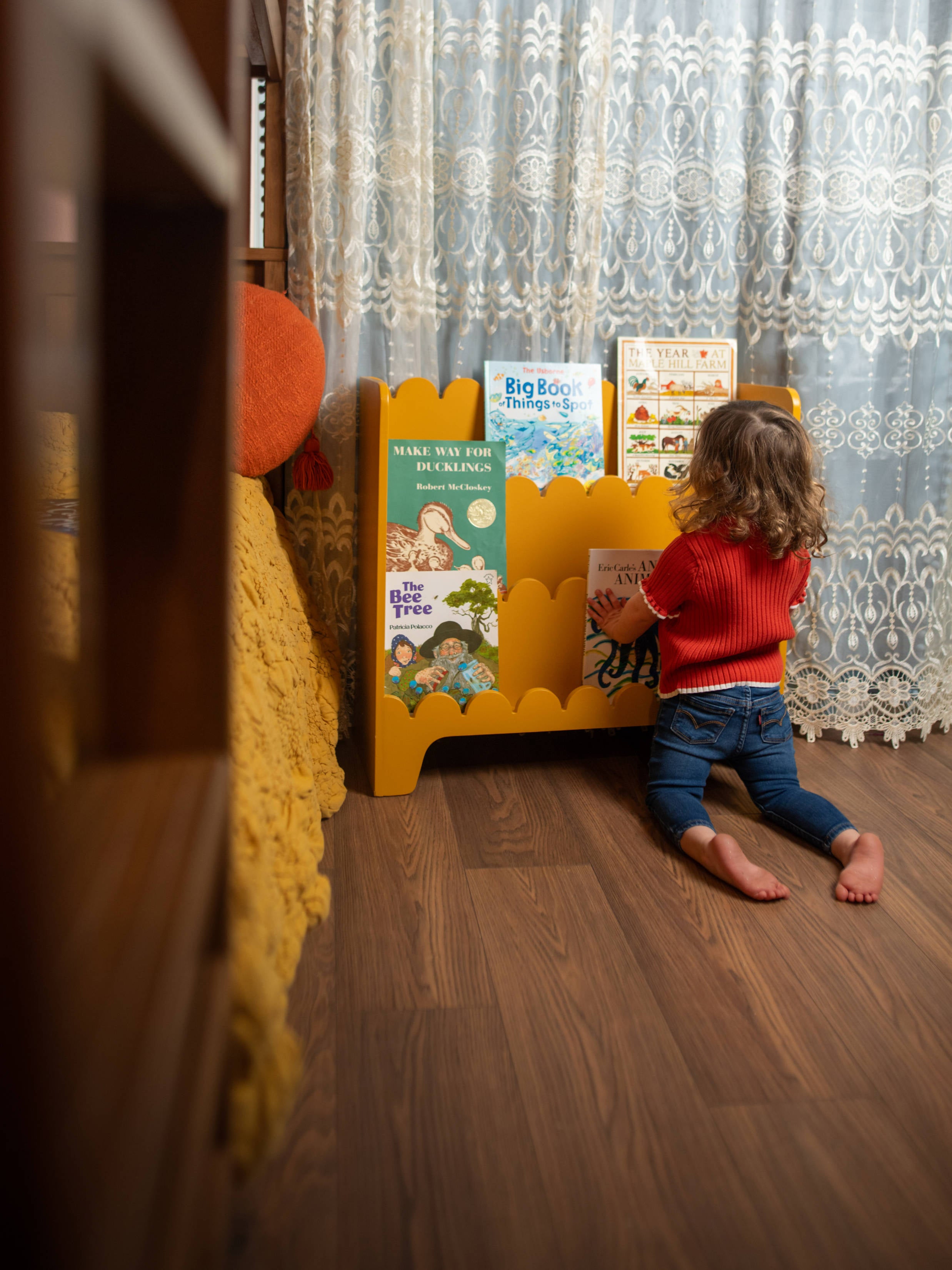 Create a magical reading nook inspired by the sea with our Olga wooden bookcase. This enchanting piece features delicate scalloped detailing that sparks the imagination and adds a touch of whimsy to any room. The three shelves provide a beautiful backdrop for your child's favorite stories, creating a cozy and inviting space for reading and dreaming.