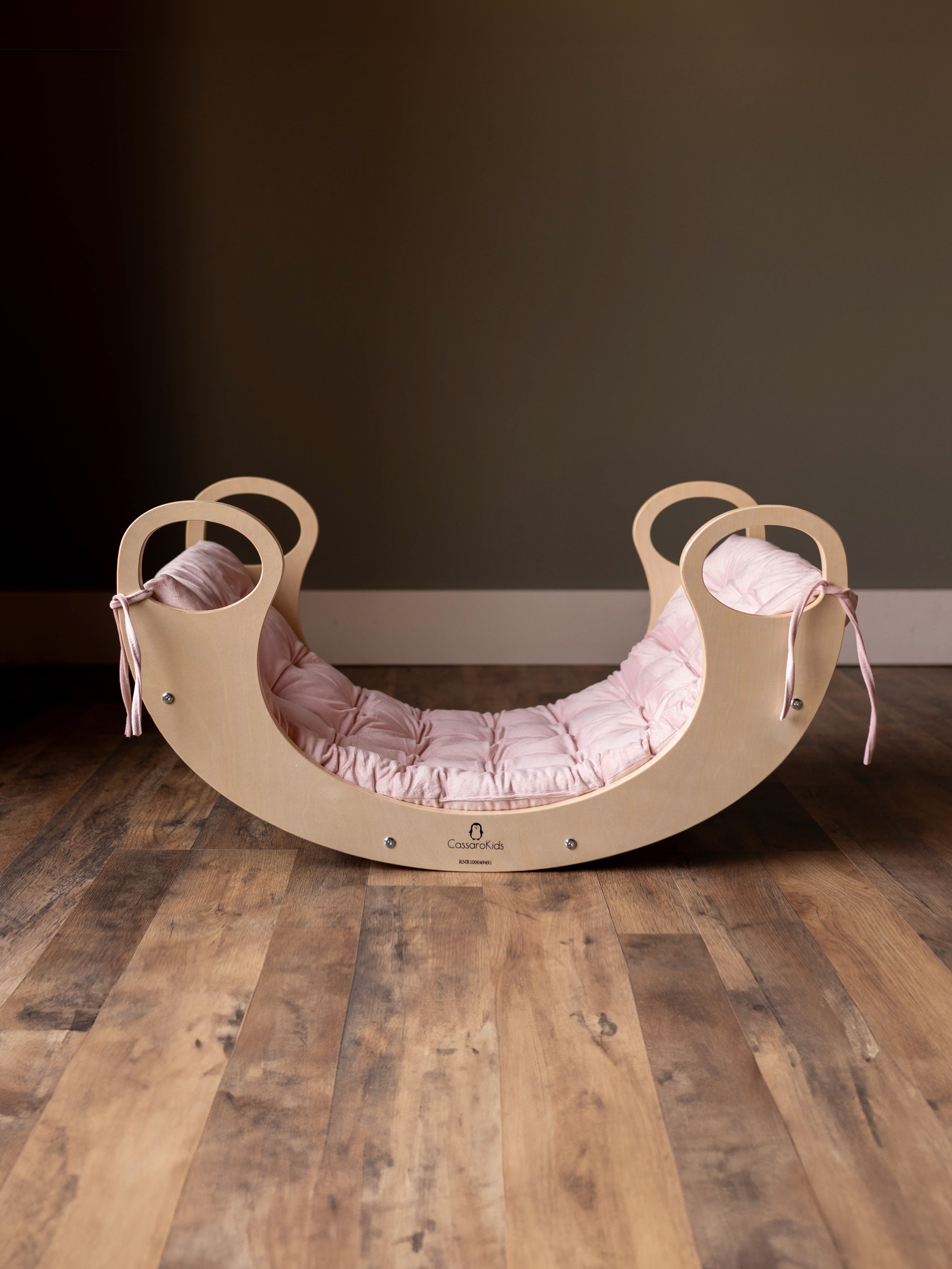 Provide your children with added comfort using the large pillow for Waldorf rocker. This cushion creates a peaceful space for kids to relax and unwind after playtime. It encourages young imaginations to journey to faraway places while remaining cozy at home. Surround them with beloved stuffed animals to form a gentle retreat for rest and calm. Designed to fit our large rockers perfectly, and for those with jumbo rockers, matching jumbo pillows are available.