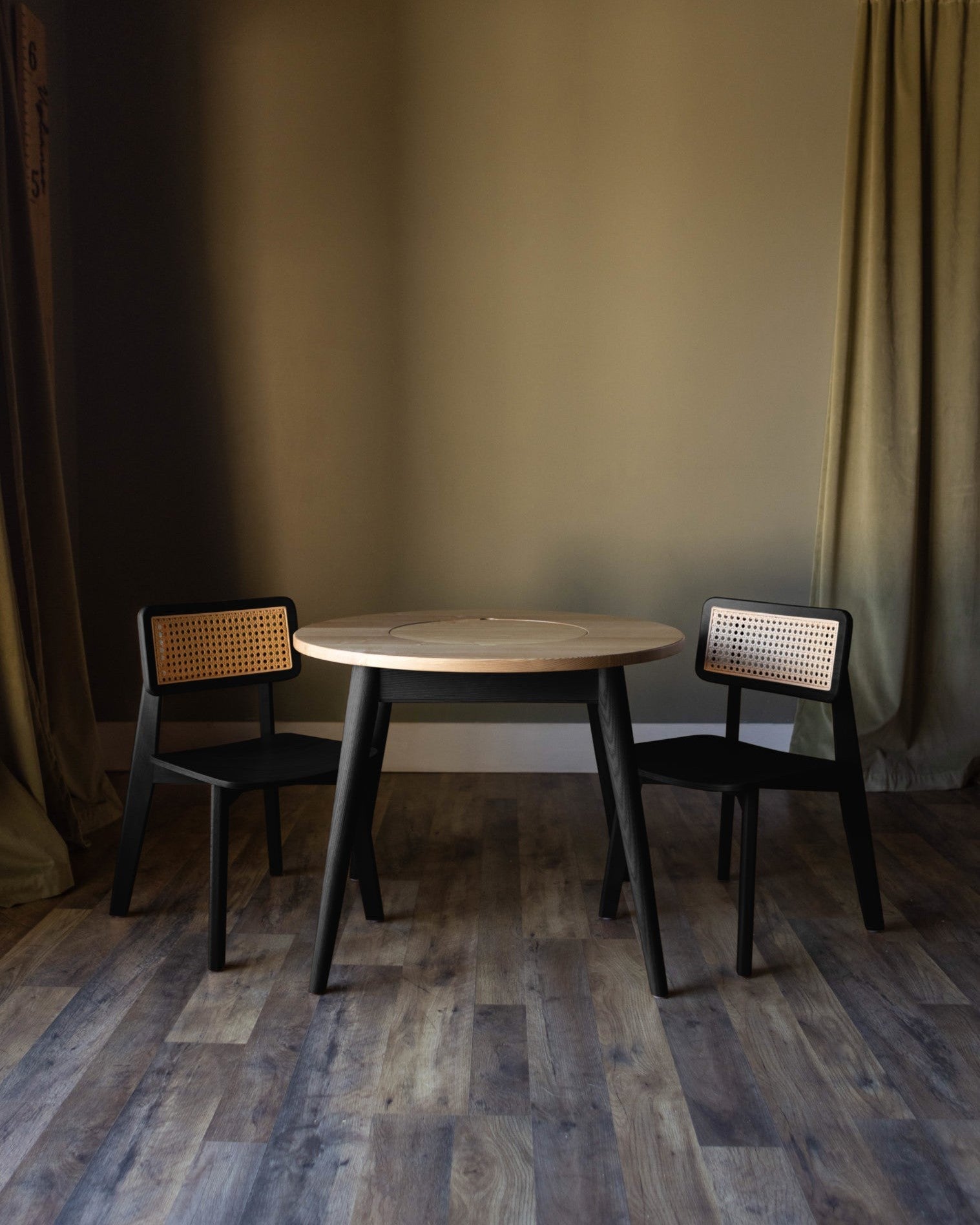 Meet the Lucille, a table that understands that the best kind of play often comes with a little bit of clutter. Designed with a timeless French silhouette, this round play table features a warm, natural wood top paired with gracefully tapered legs in a soft Alabaster White.