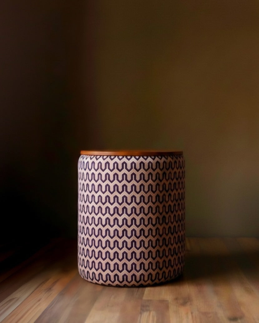 The Alastair Storage Ottoman seamlessly blends refined aesthetics with practical storage. Wrapped in sumptuous velvet with striking geometric detailing inspired by Moroccan design, this drum-shaped piece adds understated elegance to any room. The sturdy wood top functions as a convenient side table for beverages, books, or décor, while the spacious lined interior conceals blankets, toys, and household essentials. Whether anchoring a living room, nursery, or reading corner, the Laurent delivers both visual sophistication and everyday functionality—a thoughtfully designed piece that earns its place in a well-appointed home.