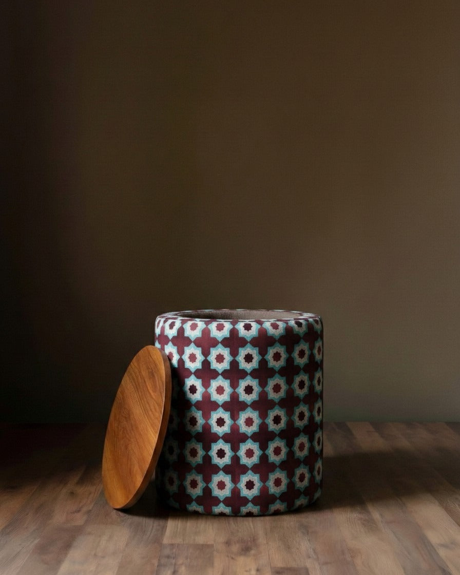 The Bazzelle Storage Ottoman seamlessly blends refined aesthetics with practical storage. Wrapped in sumptuous velvet with striking geometric detailing inspired by Moroccan design, this drum-shaped piece adds understated elegance to any room. The sturdy wood top functions as a convenient side table for beverages, books, or décor, while the spacious lined interior conceals blankets, toys, and household essentials. Whether anchoring a living room, nursery, or reading corner, the Laurent delivers both visual sophistication and everyday functionality—a thoughtfully designed piece that earns its place in a well-appointed home.