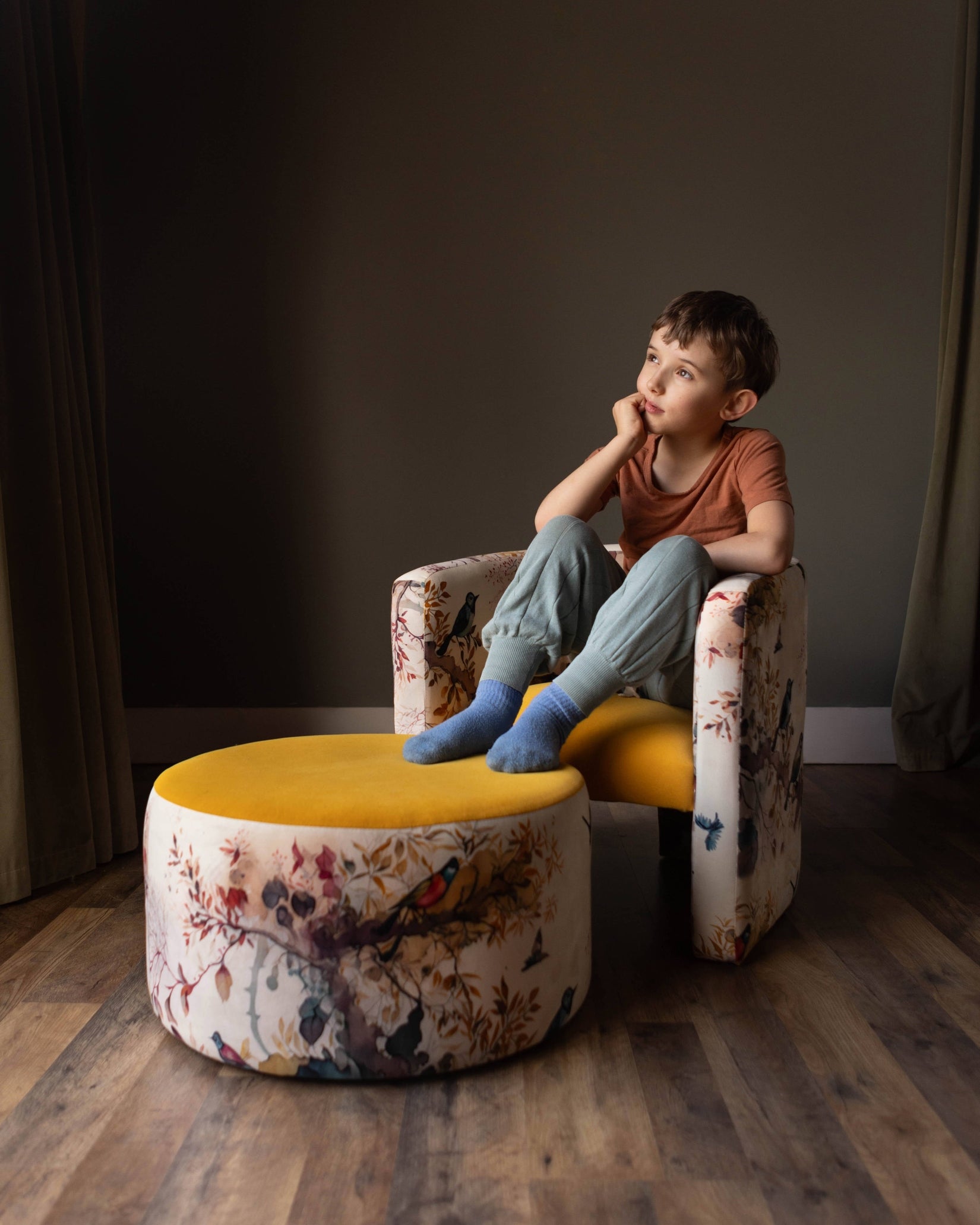 Transform your playroom with this luxurious velvet chair, handcrafted with a sturdy frame, plush cushions, and exquisite upholstery. Prepare to be irresistibly drawn to its beauty and comfort!