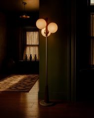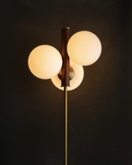 Indulge in the luxurious glow of the Callisto Floor Lamp. Crafted with reddish wooden oak and double head milk white opal glass, this lamp exudes elegance and sophistication. The hand-finished brass, coated in clear lacquer, adds a subtle sheen and protection. Mounted on a marble base, this lamp is a must-have for any tasteful and exclusive space.