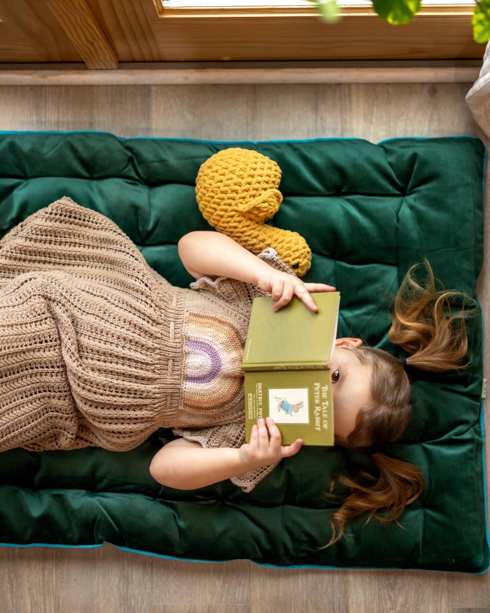 Surround your child with their favorite pile-up pillows to build a soft sanctuary of rest and relaxation. Inspire your child to dream up new, imaginative worlds while creating a comfy spot to let their minds wander. Add a blanket or our tent overtop your triangle and watch them snuggle in.