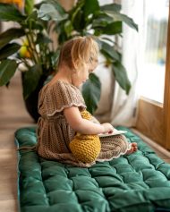Surround your child with their favorite pile-up pillows to build a soft sanctuary of rest and relaxation. Inspire your child to dream up new, imaginative worlds while creating a comfy spot to let their minds wander. Add a blanket or our tent overtop your triangle and watch them snuggle in.