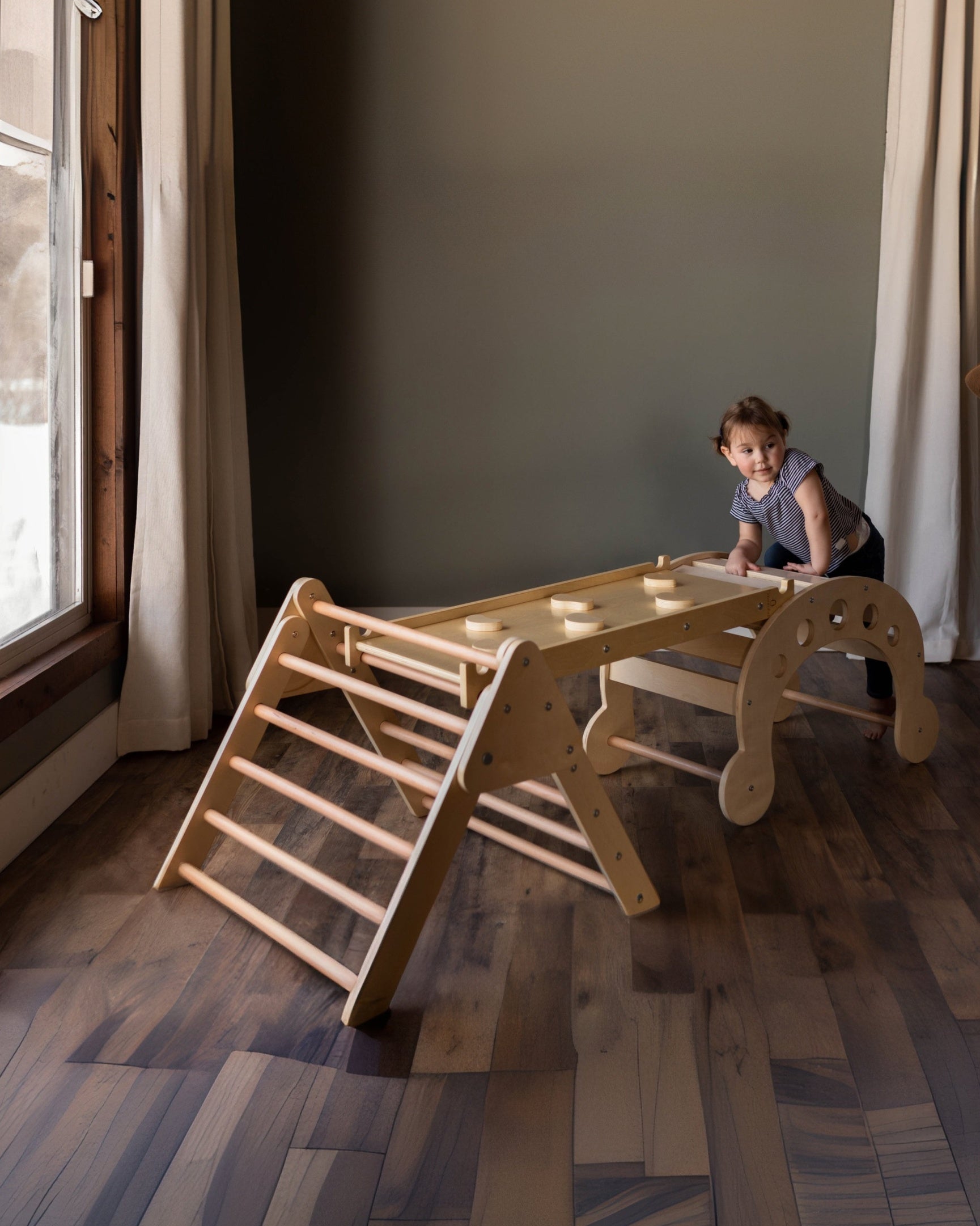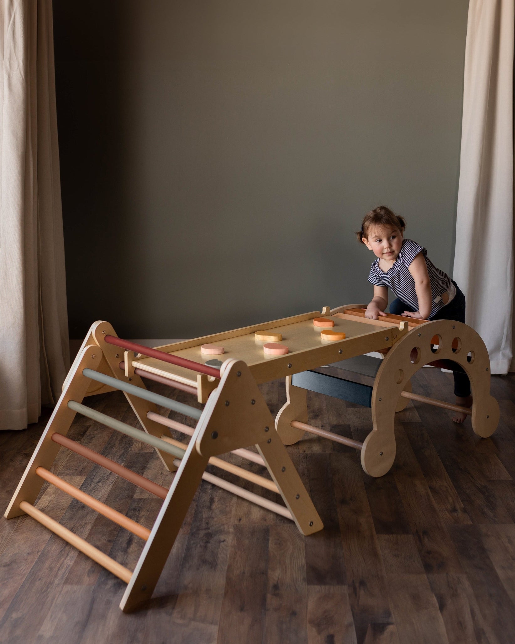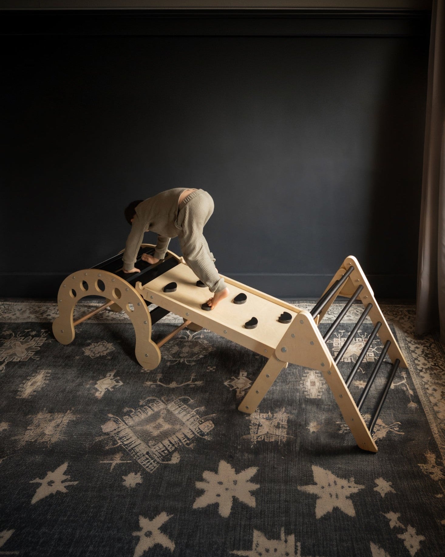 The Cassarokids Large Climbing Playset, featuring a rocker, slide, and foldable climbing triangle, is an ideal choice for younger climbers. Each handcrafted piece, made from FSC/PEFC-certified sustainable wood and finished with water-based protective lacquer and paint, can be enjoyed individually or combined with others. Its minimalist design invites children to unleash their creativity and imagination. Invest in this thoughtfully crafted playset and watch your child’s imaginative adventures unfold.
