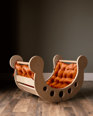 Provide your children with added comfort using the small pillow for Waldorf rocker. This cushion creates a peaceful space for kids to relax and unwind after playtime. It encourages young imaginations to journey to faraway places while remaining cozy at home. Surround them with beloved stuffed animals to form a gentle retreat for rest and calm. Designed to fit our large rockers perfectly, and for those with jumbo rockers, matching jumbo pillows are available.