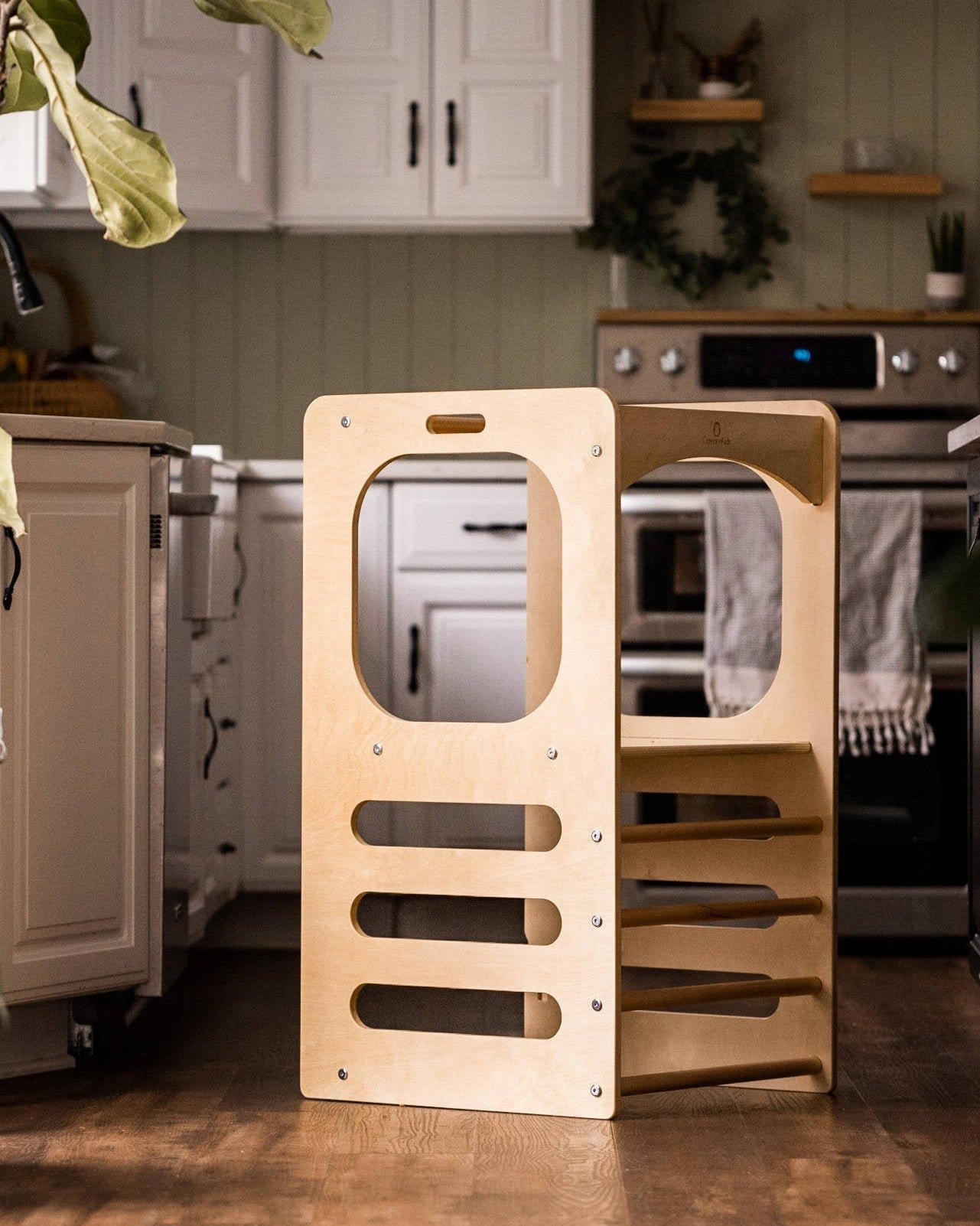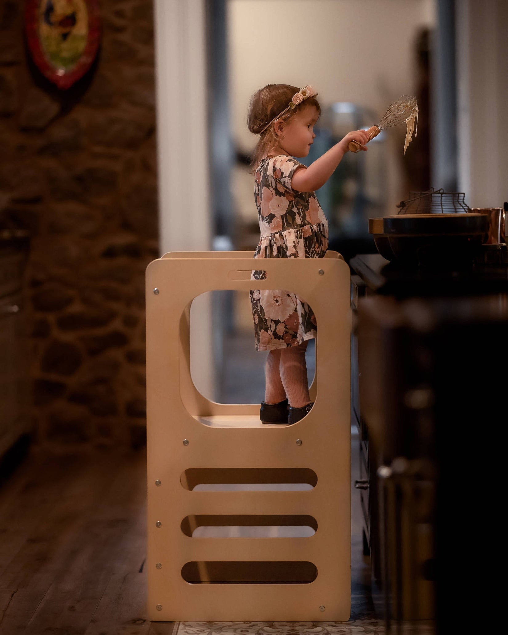 Help your child reach new heights with the Climbing Play Tower! This learning tower creates a safe way for your child to help in the kitchen — mixing and pouring to create deliciously sweet memories. Or place the Climbing Play Tower in their playroom for climbing and sliding fun! They can defend their castle against invading armies, or set up a quaint neighborhood café. No matter their interests, this Learning and Play Tower are sure to bring their imaginations to life!