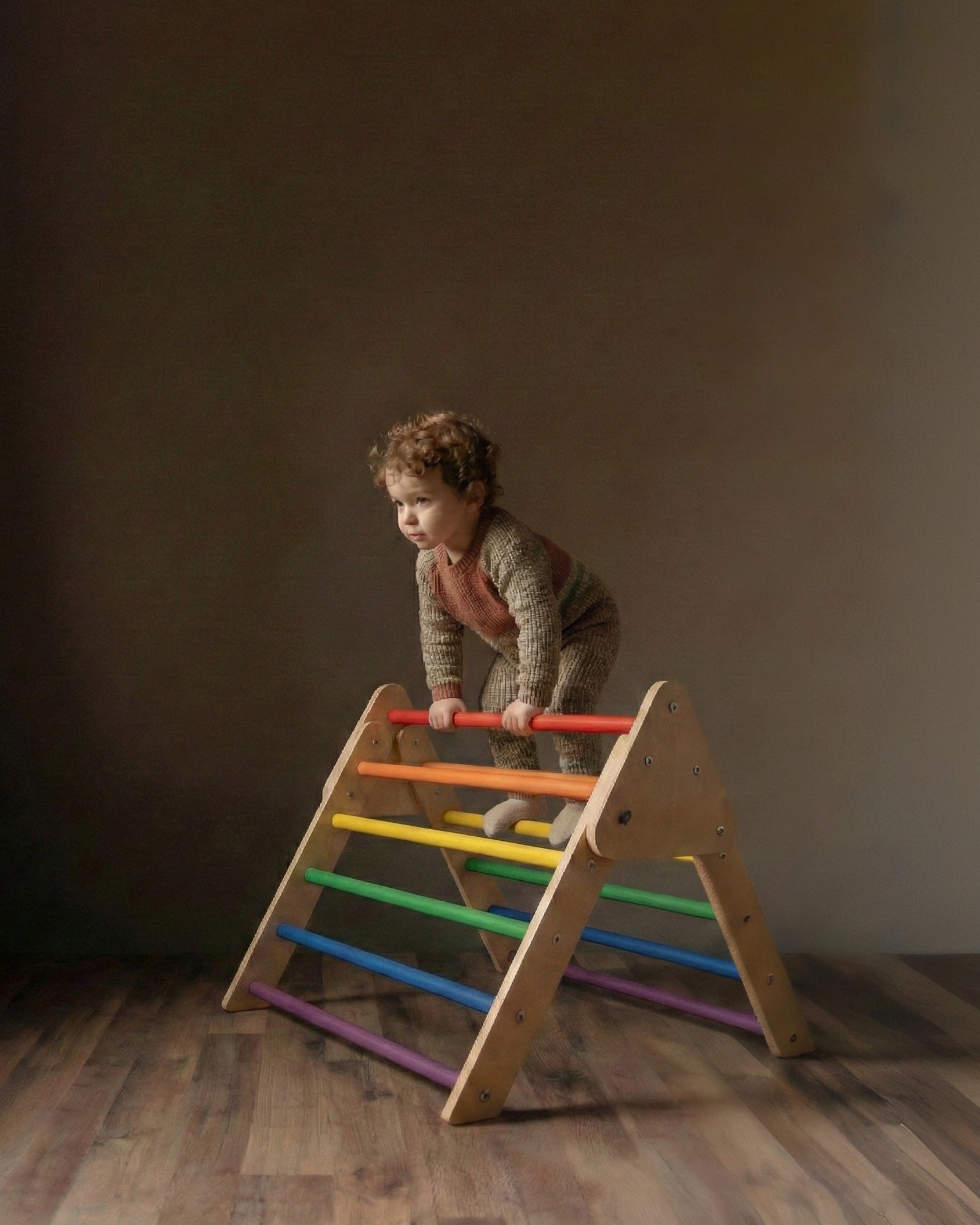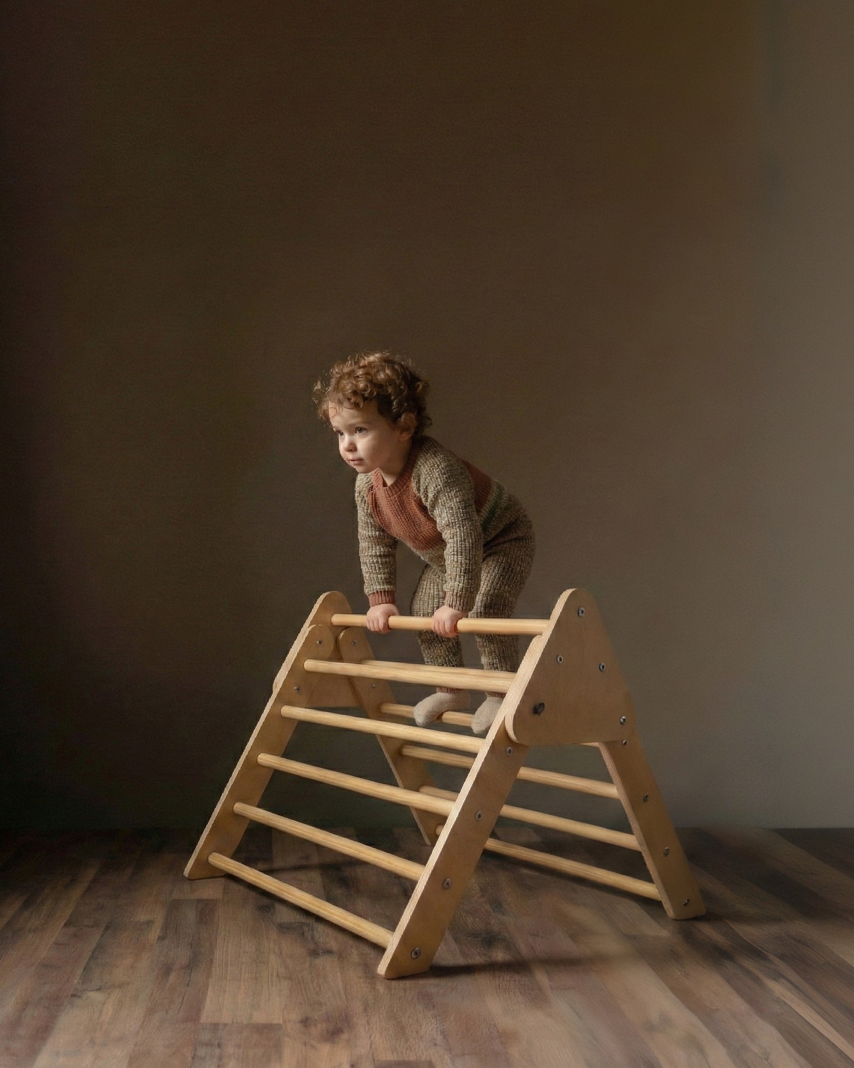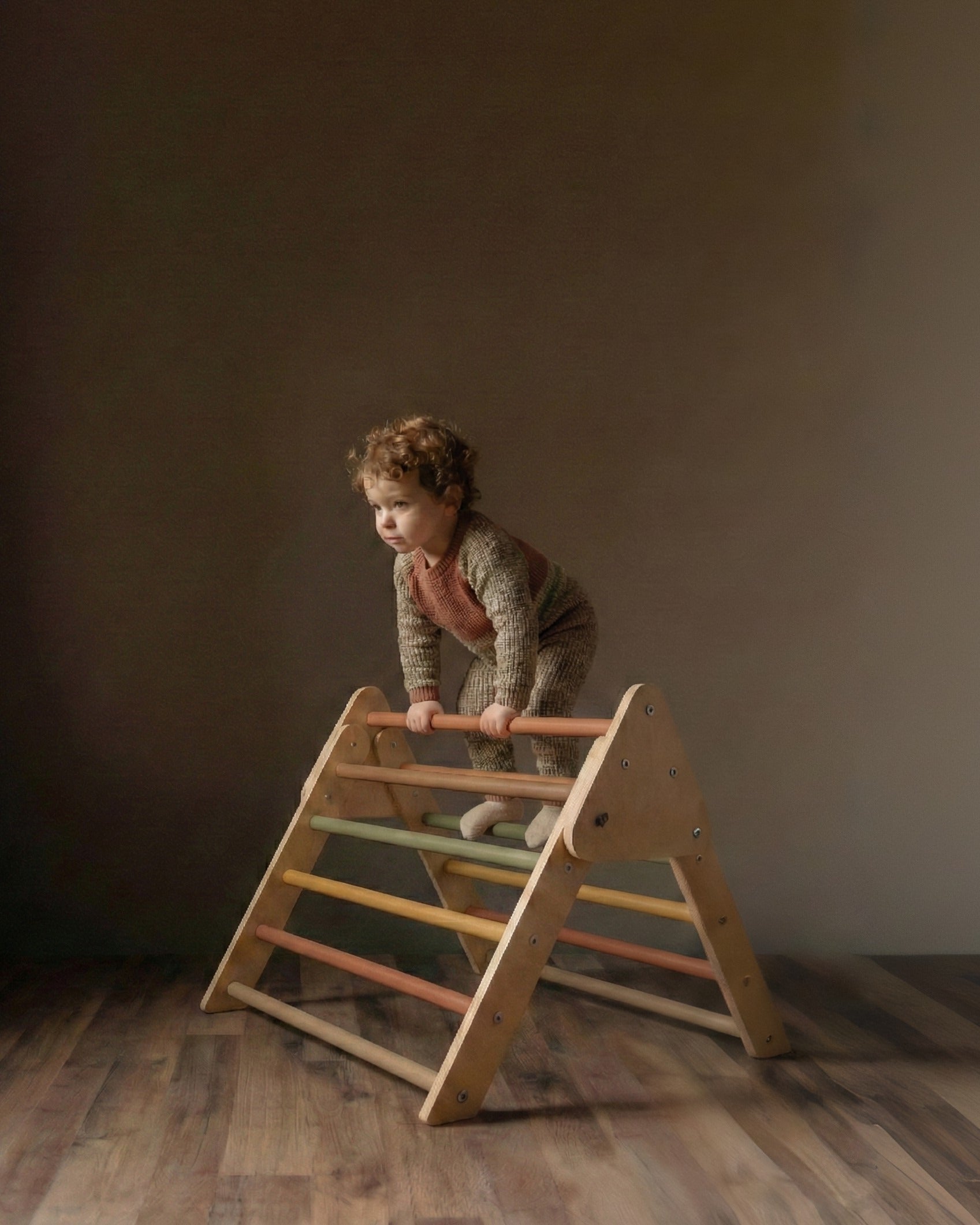 The small foldable climbing triangle is designed with younger climbers in mind. All the fun and play, It can fold WITHOUT any tools and can be stored away (but not for long because it is too much fun!)