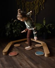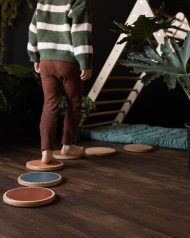 Help your children develop balance and coordination with these elegant Stepping Stones. This set includes six solid wood pieces in earth, rainbow, and natural tones, perfect for creative play and movement exercises. Designed to last, they support your child’s growth from early steps to confident hopping and skipping. A timeless addition to active learning and fun.