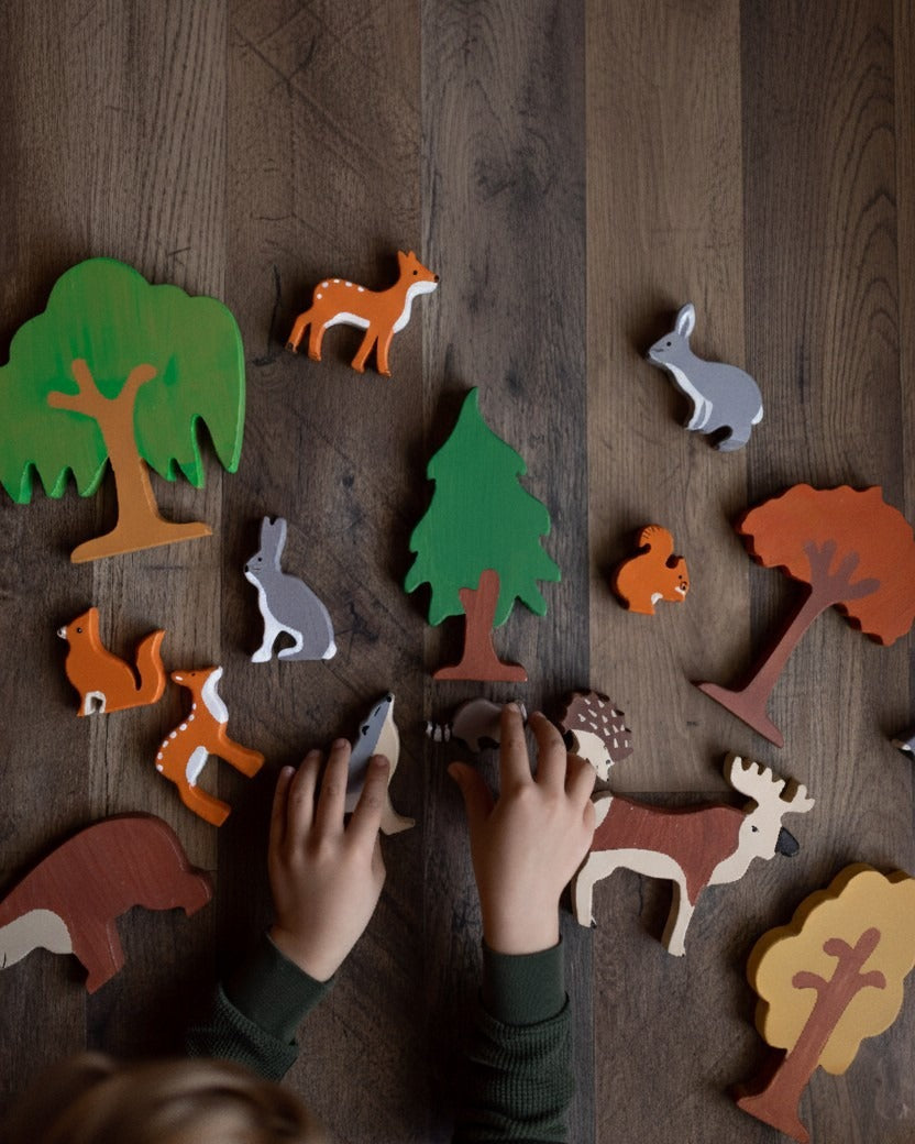 Invite the beauty of the natural world into your home with these exquisitely crafted, sturdy wooden forest animals. Designed to inspire imaginative play, your child can arrange their woodland companions to build enchanting scenes or take them along on countless adventures. These versatile figures encourage open-ended storytelling, allowing your child to weave new narratives daily or enjoy peaceful moments in the company of their forest friends.