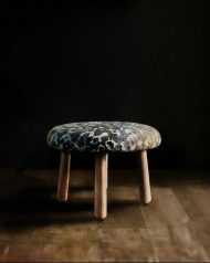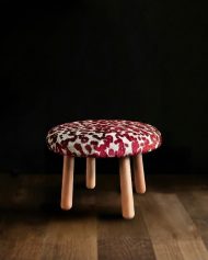 The upholstered top rests firmly on a base of solid, handcrafted wooden legs, ensuring stability and long-lasting durability. Its compact and versatile design makes it the perfect addition to a living room arrangement, a cozy reading nook, or a stylish nursery.