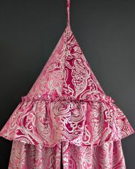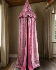Elevate your living space with this exquisite velvet canopy, a masterpiece inspired by the opulent grandeur of Fabergé egg designs. Adorned with a lustrous golden print against a rich, deep velvet, this canopy exudes regal elegance and sophisticated charm. The intricate patterns, reminiscent of historical artistry, promise to transform any room into a sanctuary of luxury. Perfect for creating a dramatic focal point, a cozy reading nook, or adding a touch of imperial splendor to a bedroom. This canopy is more than just decor; it’s an heirloom in the making, inviting a sense of timeless beauty and grandeur into your home.
