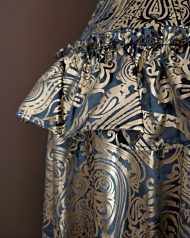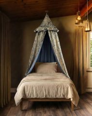 Elevate your living space with this exquisite velvet canopy, a masterpiece inspired by the opulent grandeur of Fabergé egg designs. Adorned with a lustrous golden print against a rich, deep velvet, this canopy exudes regal elegance & sophisticated charm. The intricate patterns, reminiscent of historical artistry, promise to transform any room into a sanctuary of luxury. Perfect for creating a dramatic focal point, a cozy reading nook, or adding a touch of imperial splendor to a bedroom. This canopy is more than just decor; it’s an heirloom in the making, inviting a sense of timeless beauty and grandeur into your home.