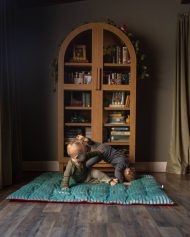 This pillow is massive, durable, and incredibly soft. The tufted construction keeps the stuffing neatly in place, even during pillow forts or storytime marathons. We love the reversible design—featuring a bright pop of color on one side and a calmer tone on the other—letting you match the energy of the room in seconds. It’s the perfect spot for kids to play and adults to relax.