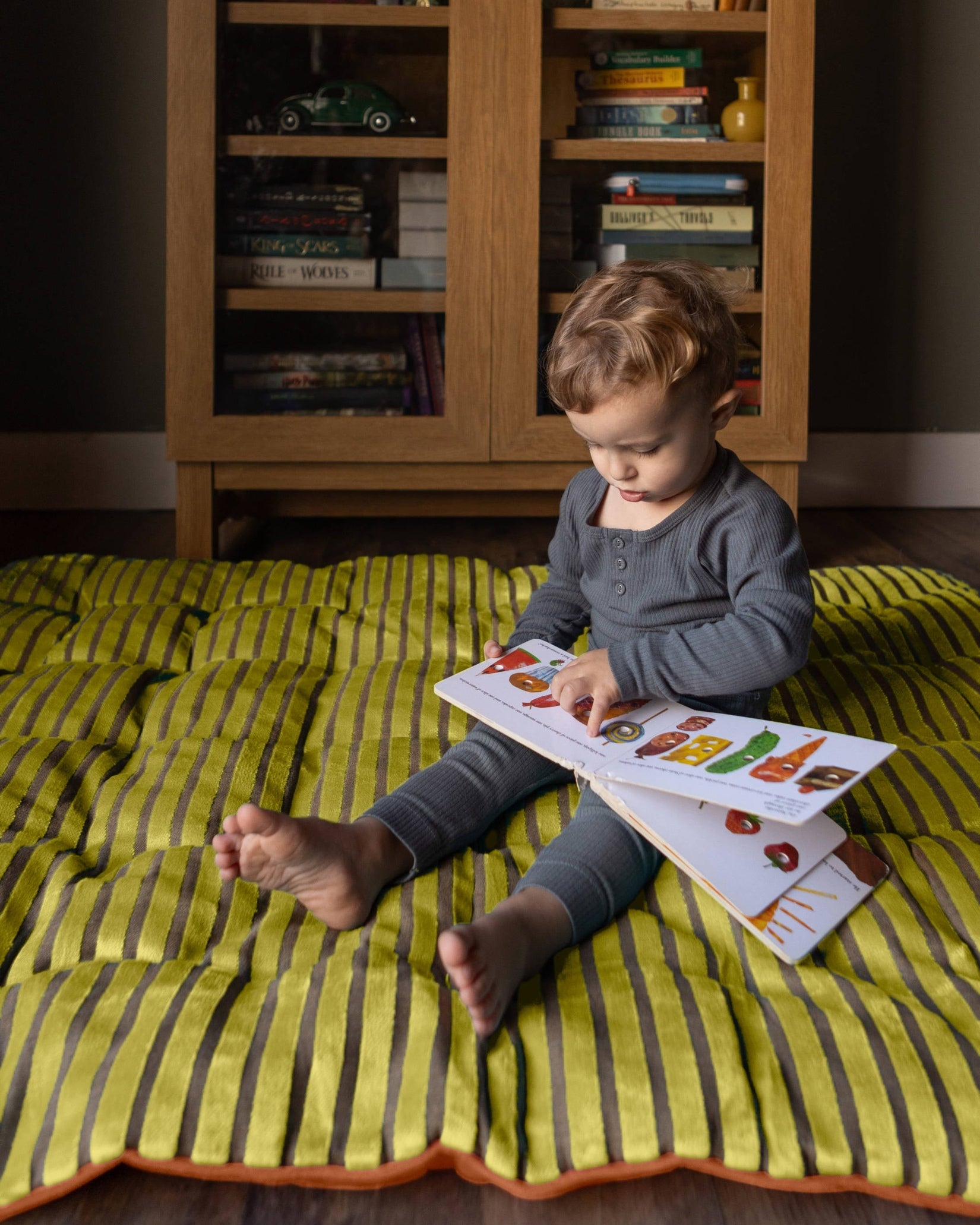 This pillow is massive, durable, and incredibly soft. The tufted construction keeps the stuffing neatly in place, even during pillow forts or storytime marathons. We love the reversible design—featuring a bright pop of color on one side and a calmer tone on the other—letting you match the energy of the room in seconds. It’s the perfect spot for kids to play and adults to relax.