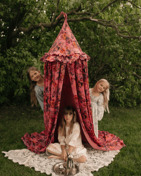 Every child needs a magical hideaway to call their own. Transform any corner of the nursery or playroom into an enchanting escape with this lush, pink floral canopy. Crafted from soft, rich velvet that feels as cozy as it looks, this hanging tent features a vibrant riot of vintage-inspired blooms in shades of deep orange, purple, and gold.