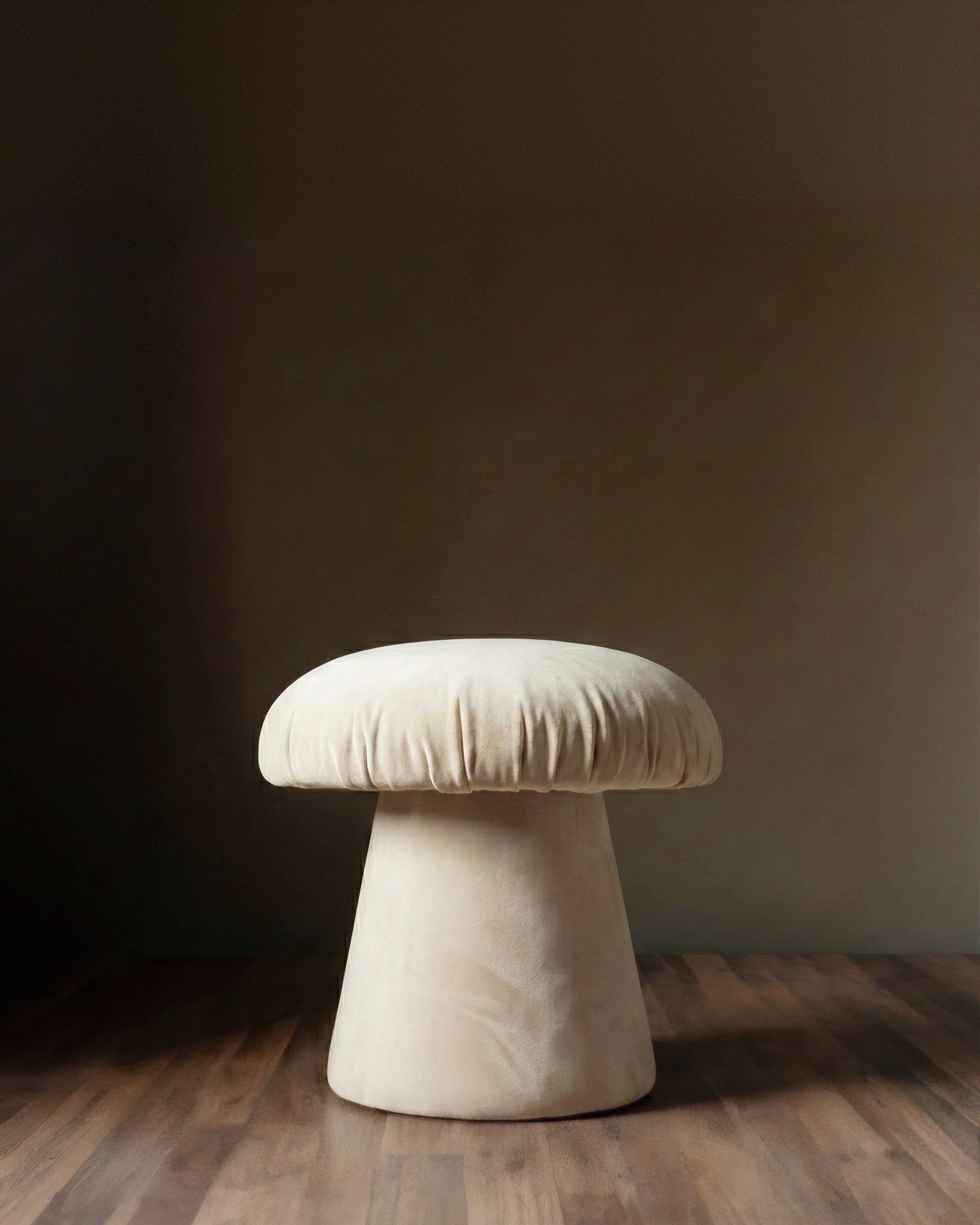 Elevate your interior landscape with this striking mushroom stool, a piece that perfectly balances playful geometry with luxurious texture. Designed as a functional sculpture, it serves as an immediate focal point in any living space, bedroom, or dressing area. Designed with a distinctive shape, this piece is far more than just extra seating—it is a sophisticated statement piece that invites conversation and touch.