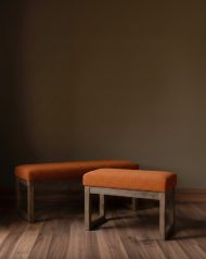 Ground your space with the perfect blend of rugged strength and vibrant comfort. This substantial bench is handcrafted from solid timber, stained in a deep, dark walnut finish that highlights the wood’s natural grain and sturdy character. Built to last for generations, the robust frame is topped with a thick, plush seat cushion. The upholstery is a high-end, richly textured woven fabric with a velvet-soft hand, featuring a warm rust velvet palette. It’s an inviting statement piece designed to bring warmth and artisanal quality to your entryway, dining table, or the foot of your bed.