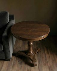 Anchor your living space with the timeless elegance of this handcrafted solid wood end table. Drawing inspiration from traditional design, this piece features a substantial round top with a clean, simple apron, perfect for displaying a lamp, framed photos, or resting your evening drink. The true focal point is the beautifully turned pedestal base, characterized by its shapely column and grounded by three graceful, carved scroll feet. Finished in a rich, deep brown stain that highlights the natural beauty of the wood grain, this sturdy side table brings a sense of warmth and sophisticated charm to any room. It’s an heirloom-quality accent piece built to be cherished for years to come.
