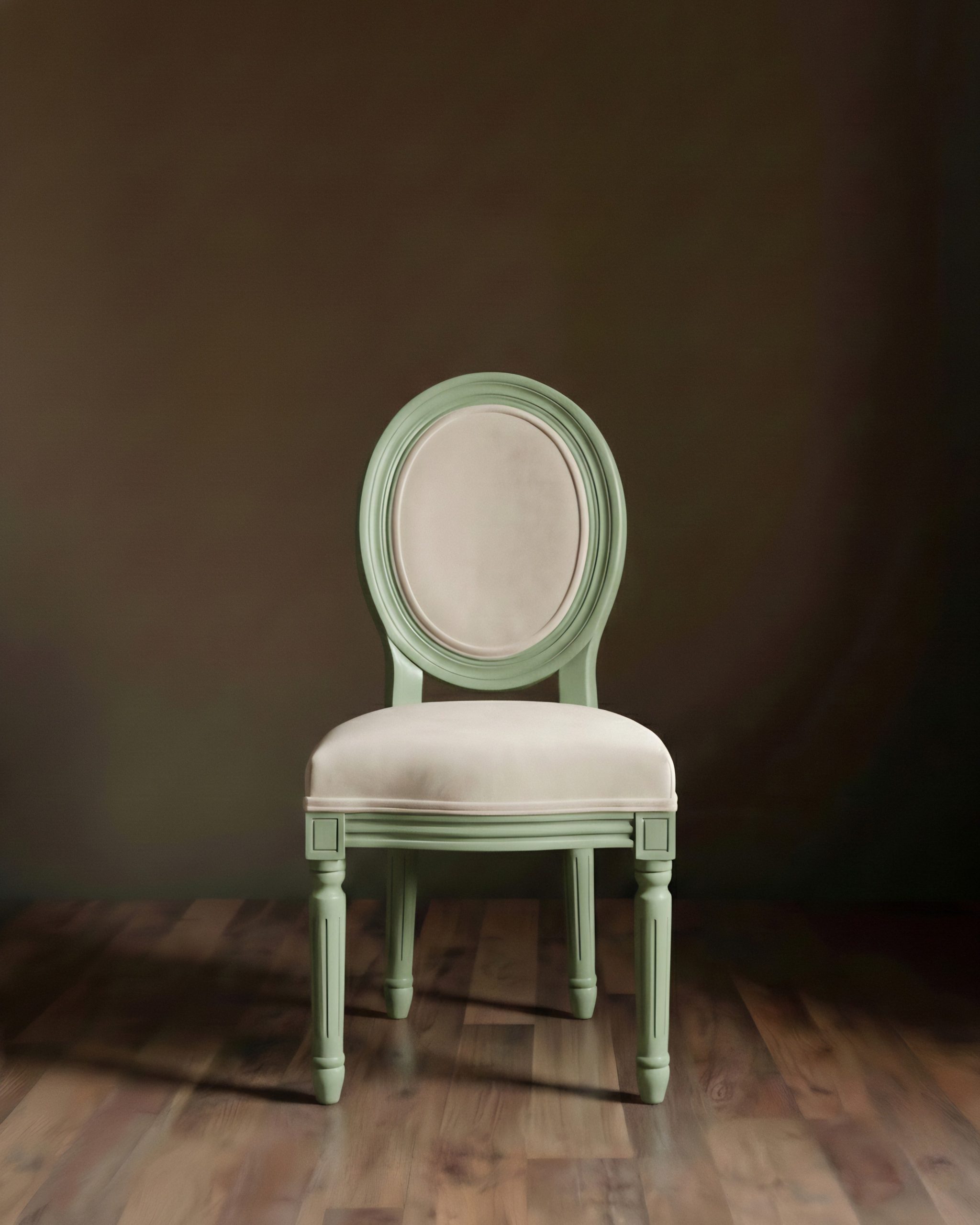 Inspired by classic French design, this chair features a timeless oval back and elegant silhouette, sized perfectly for children. The frame is constructed from high-quality solid oak and painted in a soothing Alabaster white, blush, sage and soft blue providing a sturdy foundation for years of make-believe and play and upholstered in buttery soft velvet.