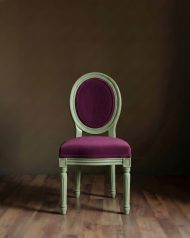 Inspired by classic French design, this chair features a timeless oval back and elegant silhouette, sized perfectly for children. The frame is constructed from high-quality solid oak and painted in a soothing Alabaster white, blush, sage and soft blue providing a sturdy foundation for years of make-believe and play and upholstered in buttery soft velvet.
