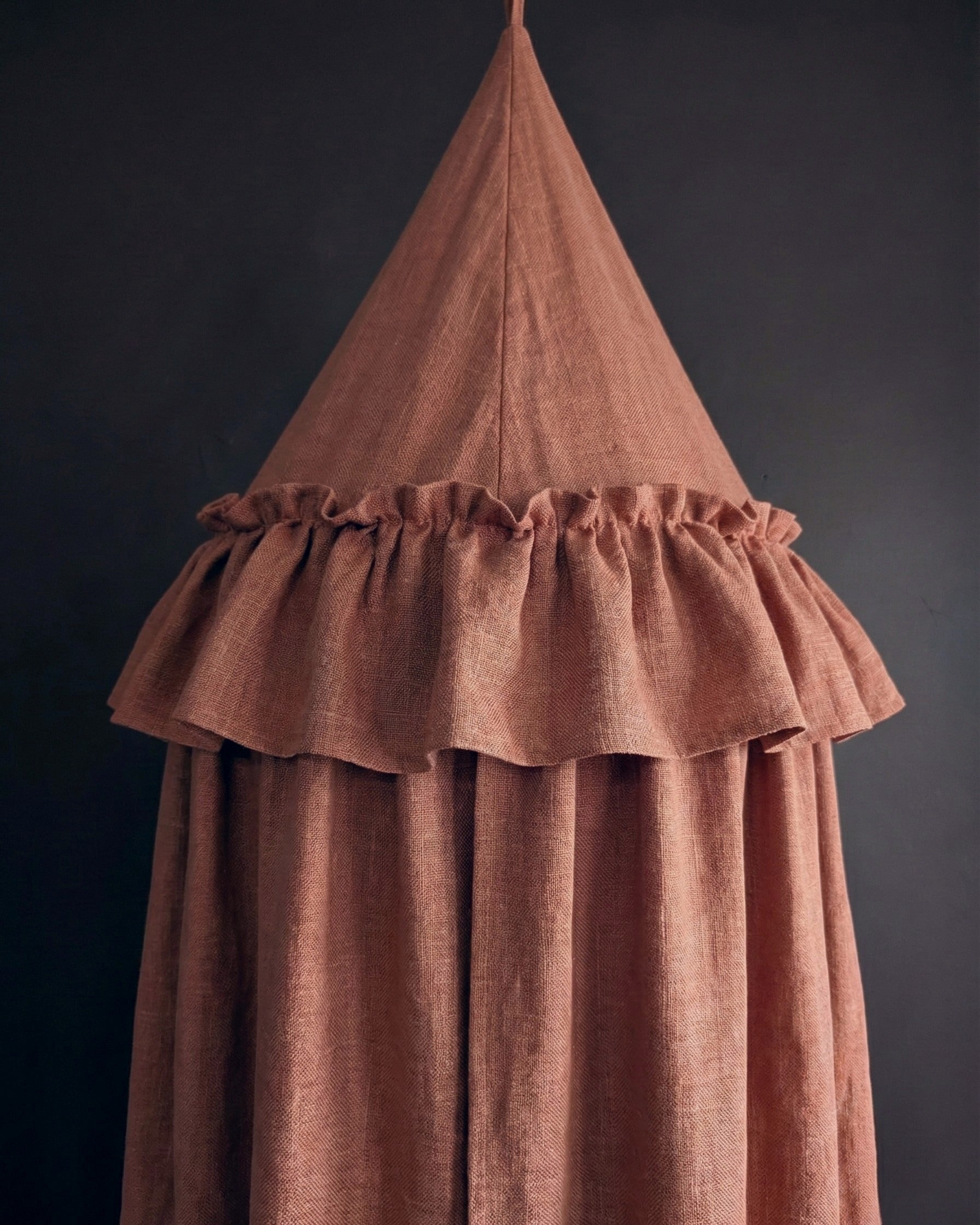 Transform your little one’s space into a whimsical retreat with our exquisite hanging canopy. Crafted from luxury fine Belgian linen, this piece isn’t just decor; it’s an invitation to dream. The fabric, known worldwide for its unparalleled softness and breathability, drapes in gentle, cascading folds, filtering light to create a serene cocoon.