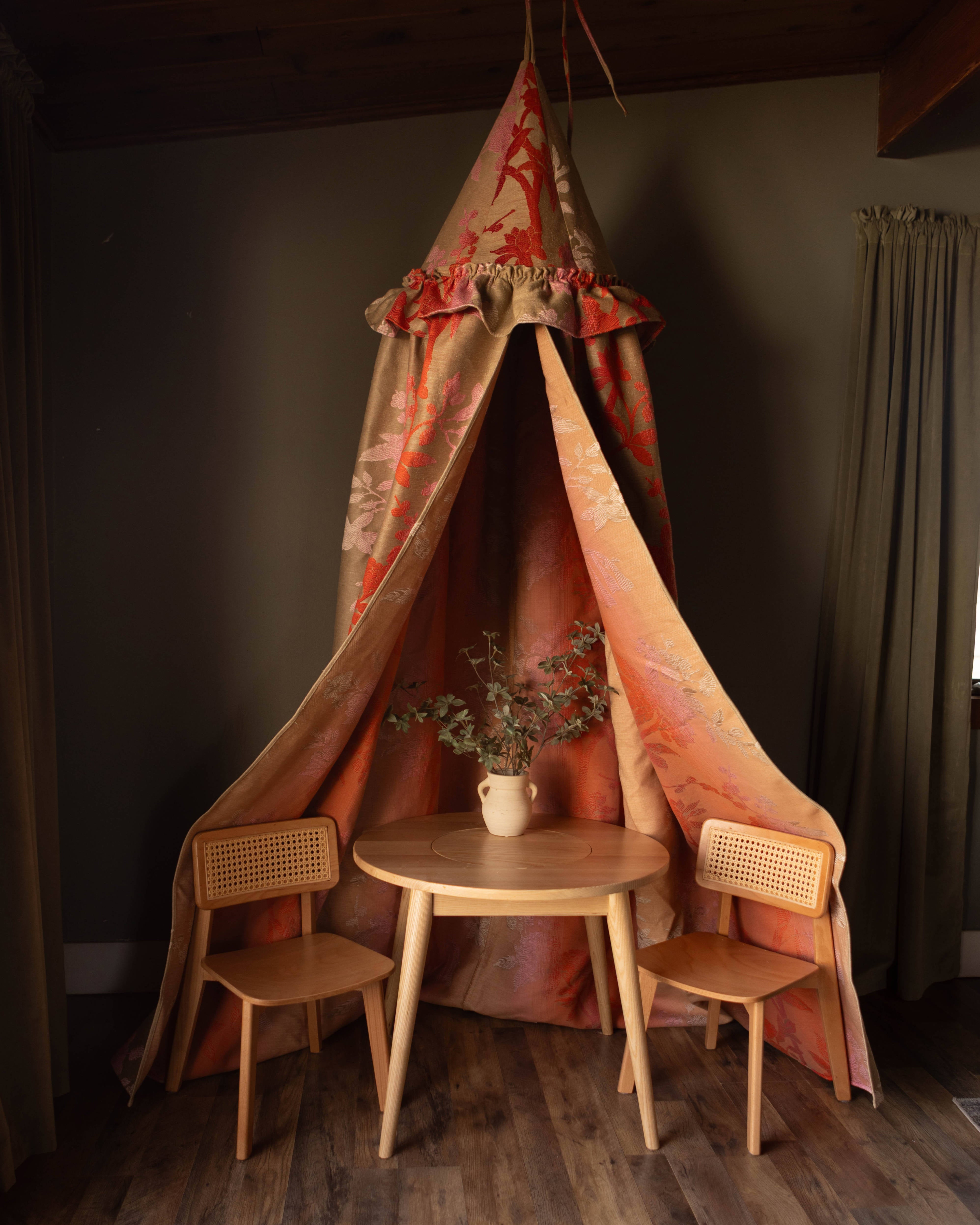 Transform your child's playroom into a fairy-tale dream with the Agnes Linen Canopy. Crafted with opulent fine linen, this canopy adds a touch of elegance and creates a serene reading nook or whimsical play area. Elevate their space with this sophisticated and stunning addition.