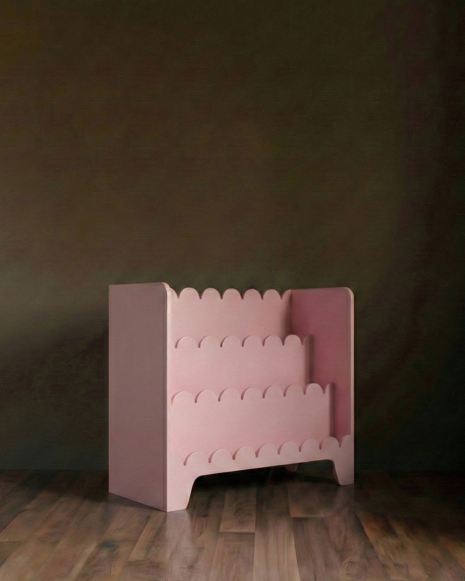 Create a magical reading nook inspired by the sea with our Olga wooden bookcase. This enchanting piece features delicate scalloped detailing that sparks the imagination and adds a touch of whimsy to any room. The three shelves provide a beautiful backdrop for your child's favorite stories, creating a cozy and inviting space for reading and dreaming.