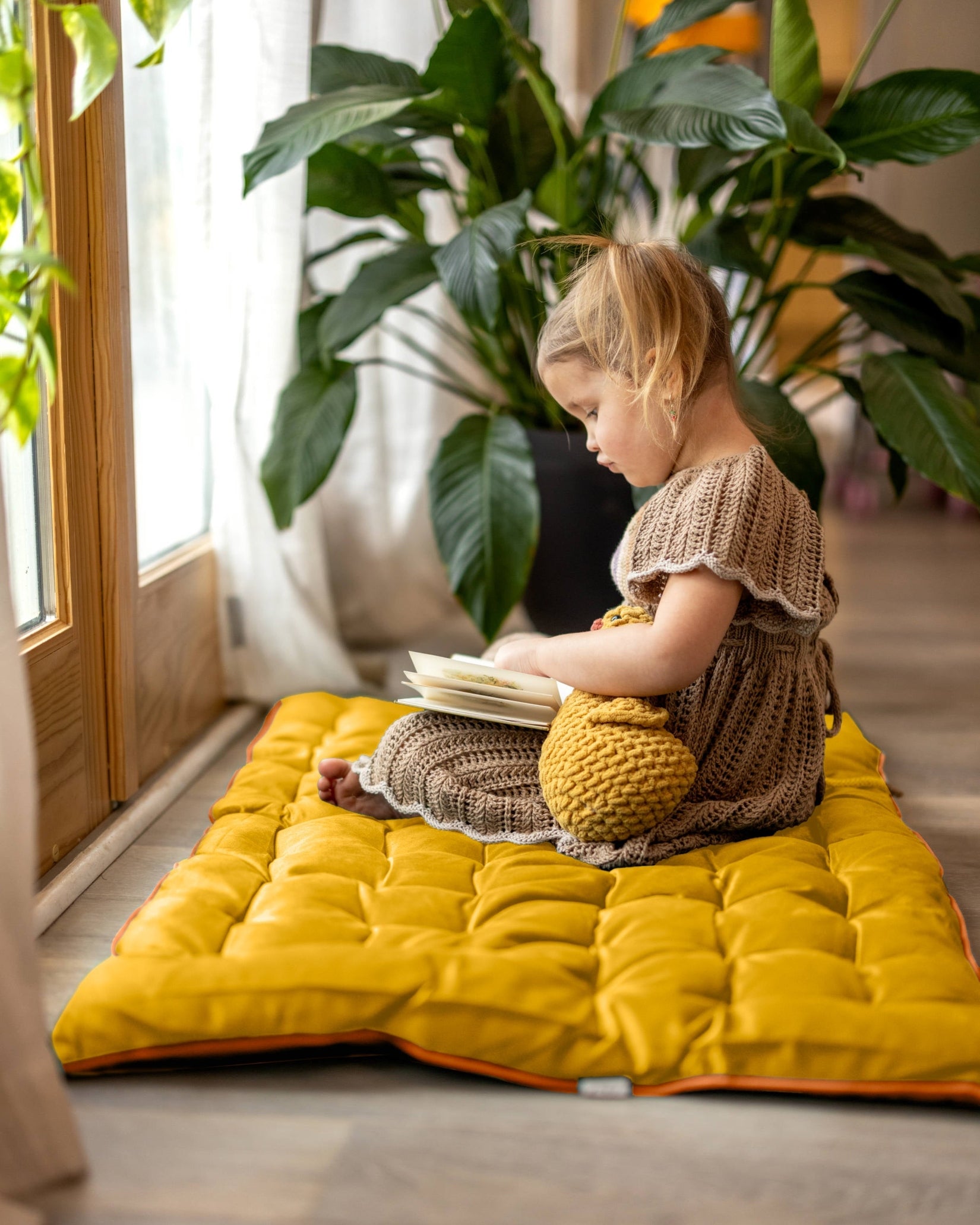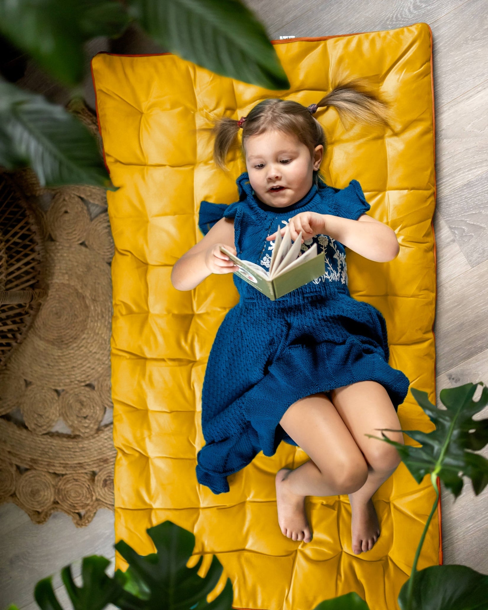 Surround your child with their favorite pile-up pillows to build a soft sanctuary of rest and relaxation. Inspire your child to dream up new, imaginative worlds while creating a comfy spot to let their minds wander. Add a blanket or our tent overtop your triangle and watch them snuggle in.