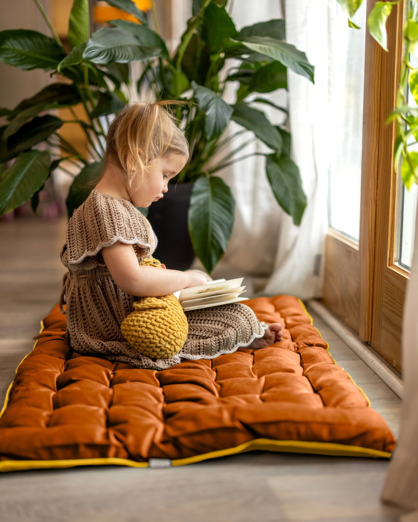 Cassarokids Jumbo Double Sided Tufted Floor Pillow Marigold Rust