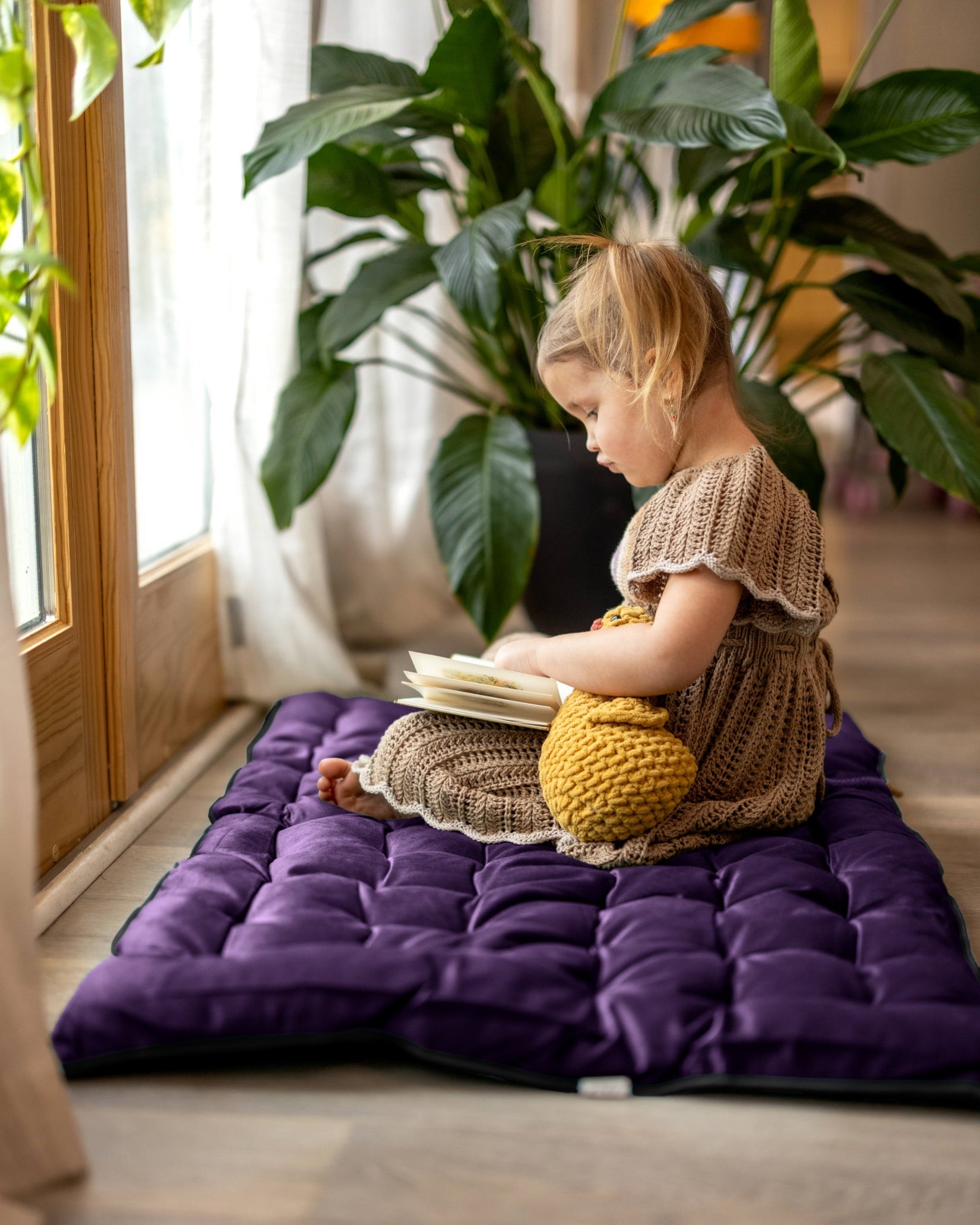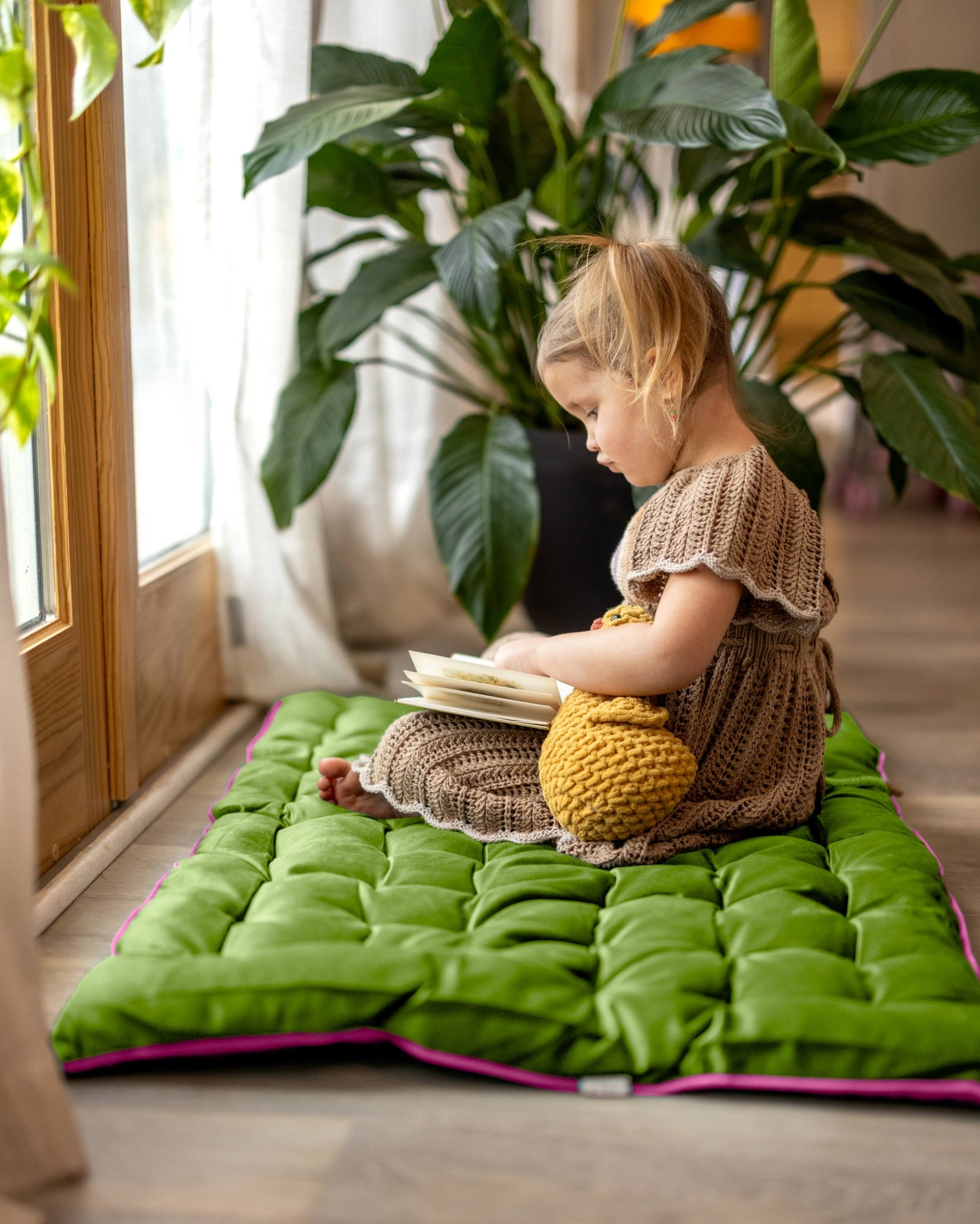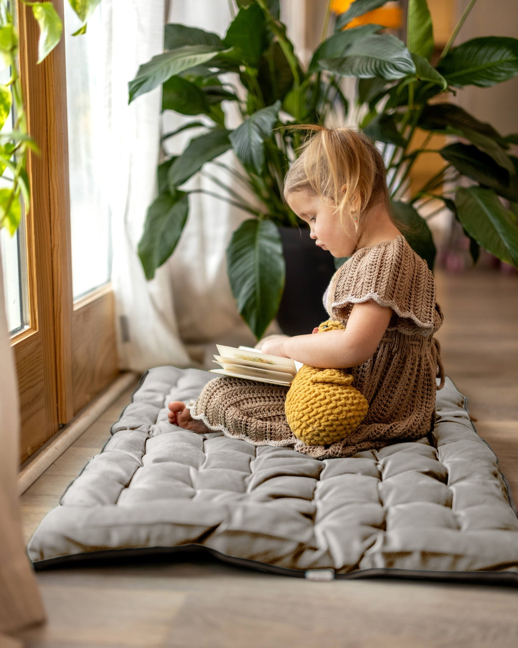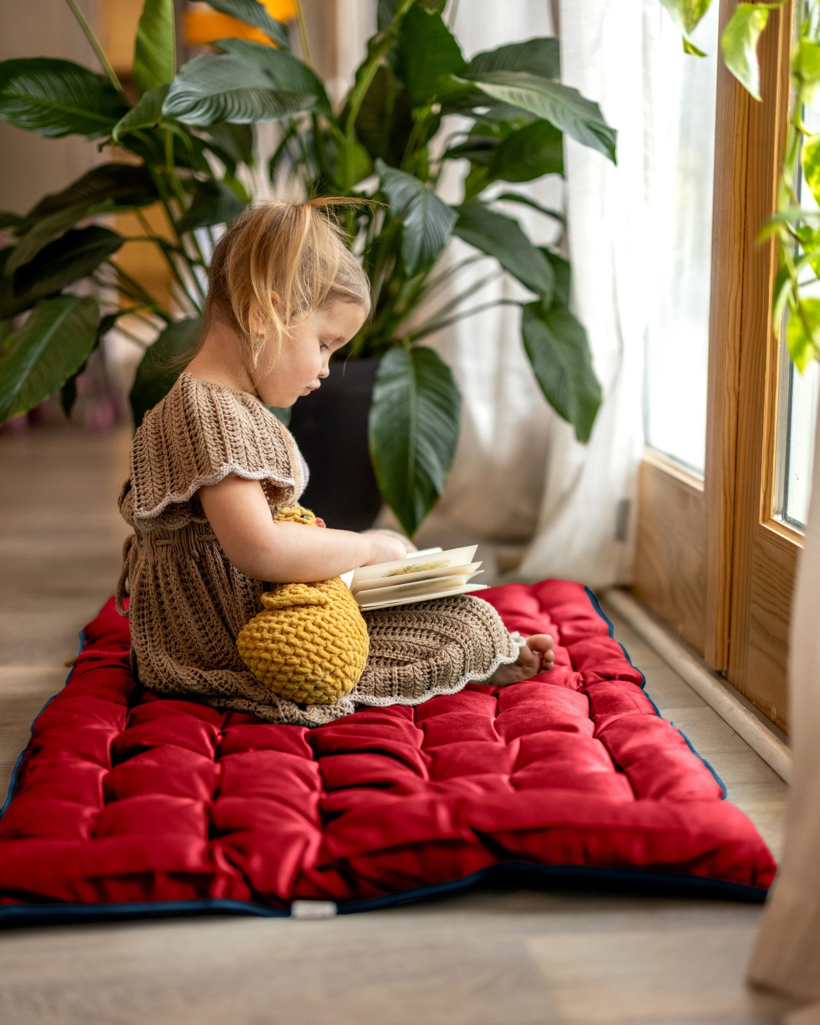 This pillow is jumbo, durable, and incredibly soft. The tufted construction keeps the stuffing neatly in place, even during pillow forts or storytime marathons. We love the reversible design—featuring a bright pop of color on one side and a calmer tone on the other—letting you match the energy of the room in seconds. It’s the perfect spot for kids to play and adults to relax.