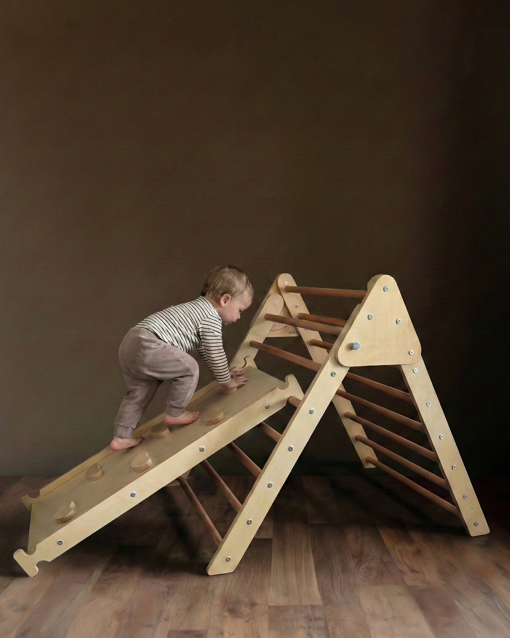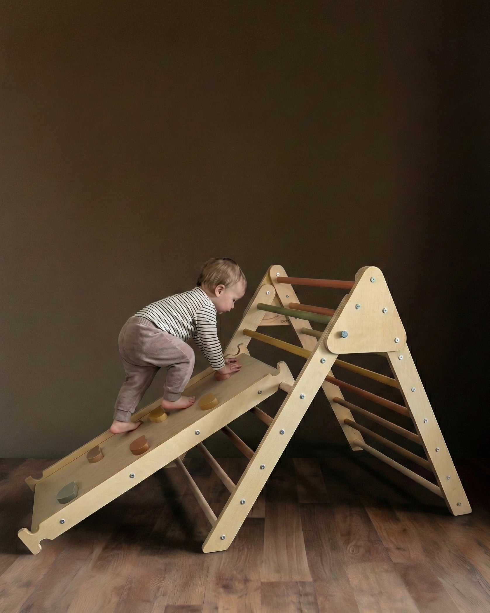 Your child’s confidence will soar as they build their climbing skills on this foldable climbing triangle. From your toddler’s experimental first step up, to your big kid’s battle cries of success — this piece will enjoy years of use.