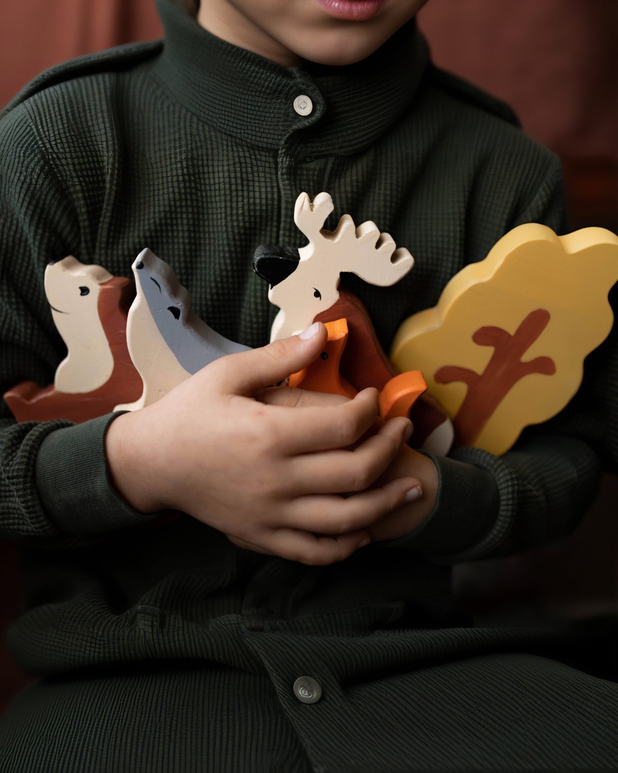 Invite the beauty of the natural world into your home with these exquisitely crafted, sturdy wooden forest animals. Designed to inspire imaginative play, your child can arrange their woodland companions to build enchanting scenes or take them along on countless adventures. These versatile figures encourage open-ended storytelling, allowing your child to weave new narratives daily or enjoy peaceful moments in the company of their forest friends.