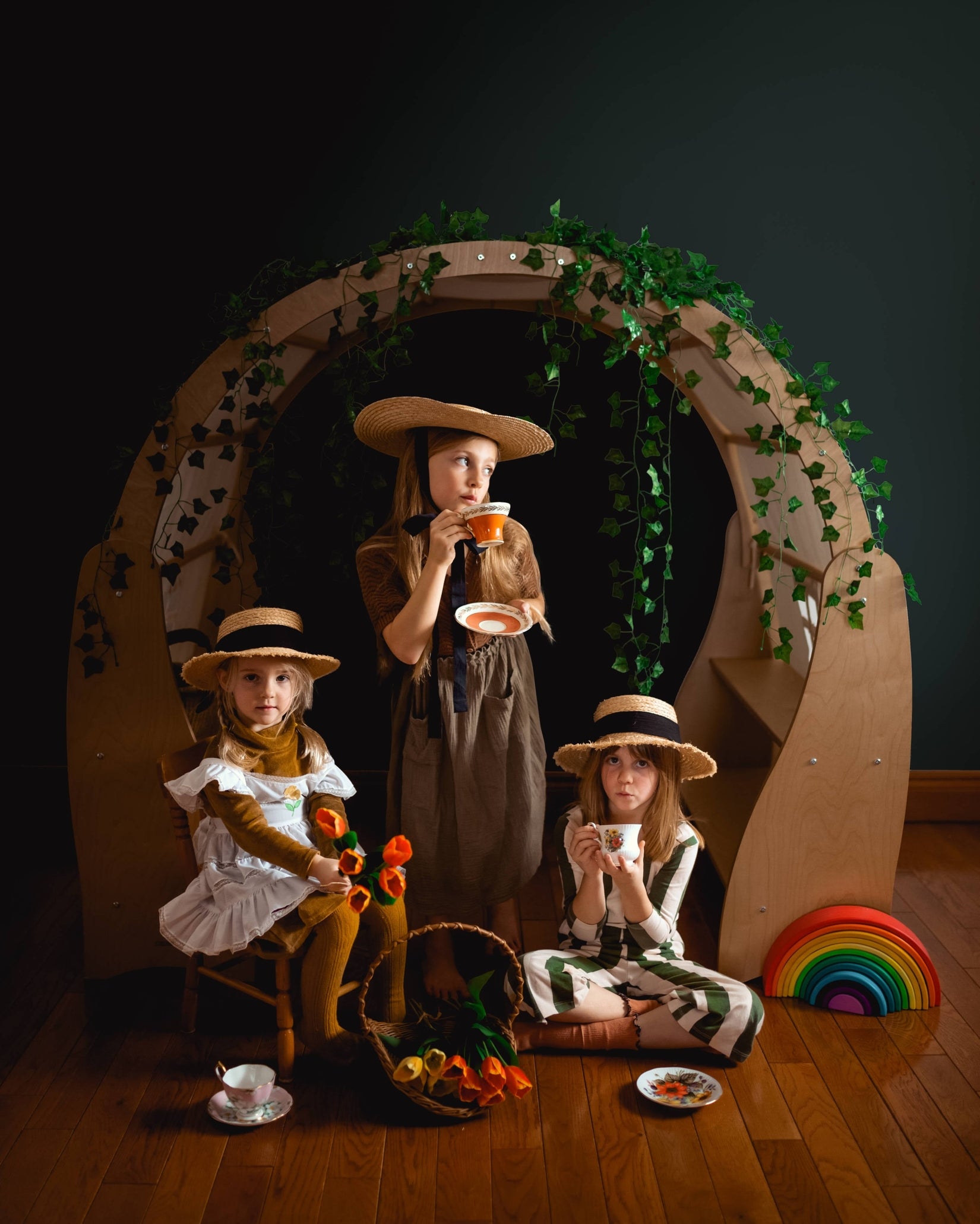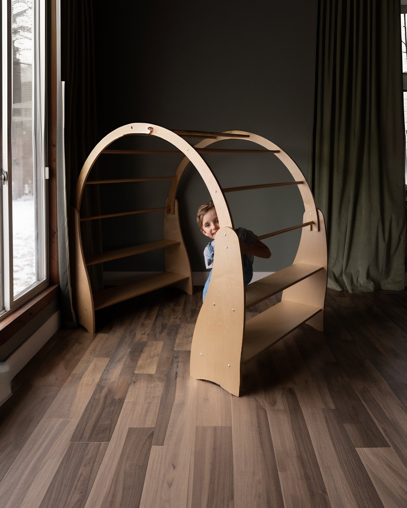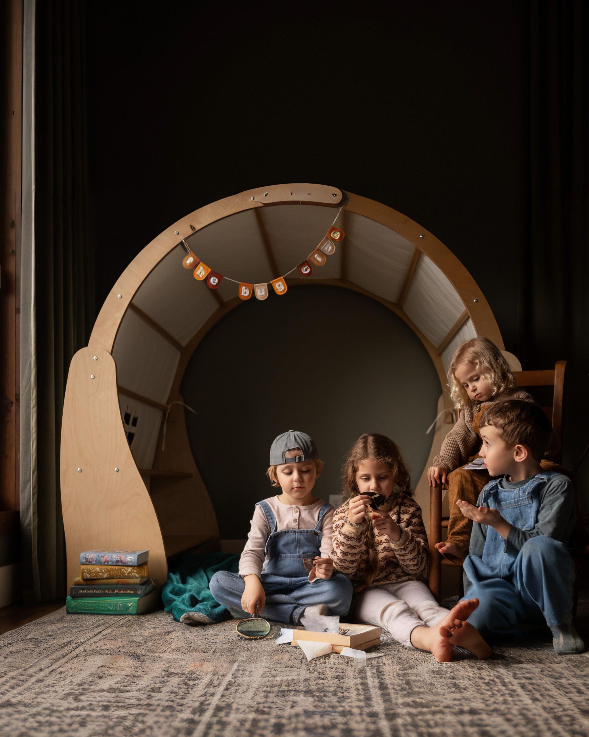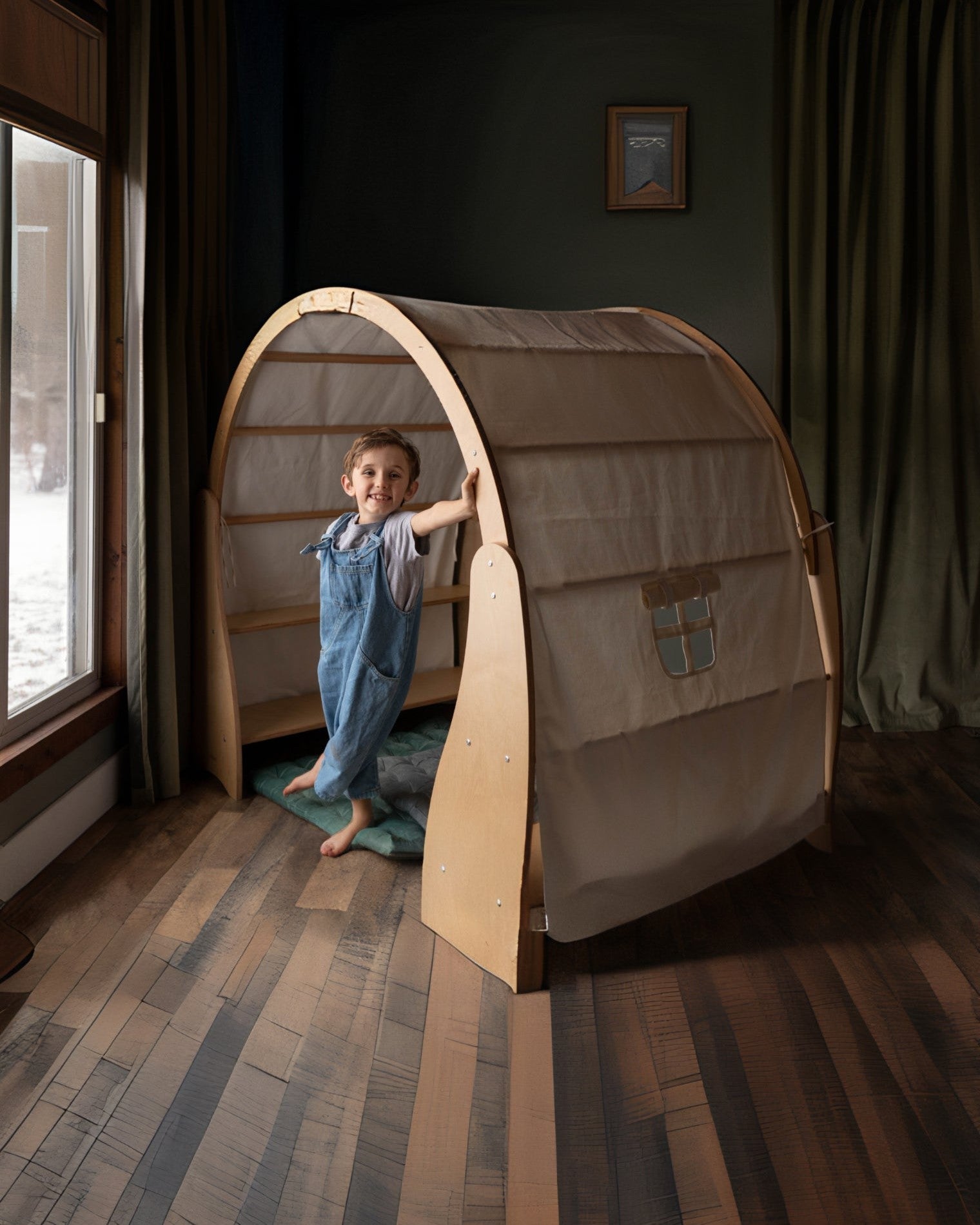 Create a cozy world of play with this solid wood Waldorf Playstand! Your child can have their very own play area, create their perfect reading nook or an imaginative play house. The Wooden Playstand will give your toddlers and preschoolers years of exploration and fun. Set up book store, library, plant shop or a cushy stuffie space for rest and relaxation. There’s plenty of room for everyone. This playstand makes a beautiful centerpiece for your child’s playroom. Give your child a world of cozy adventures. Bring extra fun and comfort to their playtime with the playstand cover. (Playstand cover is sold separately)
