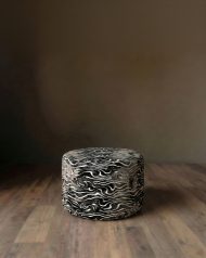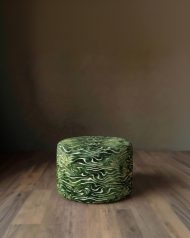Introduce a touch of kinetic artistry to your living space with this sculptural cylindrical ottoman. Upholstered in the finest high-end Italian velvet, this piece is more than mere furniture; it is a functional masterpiece.