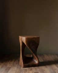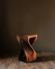 The Hamilton Solid Wood End Table features a compact design crafted from solid acacia wood with a walnut finish. Its twisted sides and open window detail add elegance, while natural wood variations give it unique character. Ideal for placing beside a bed or sofa to display a lamp or photos.