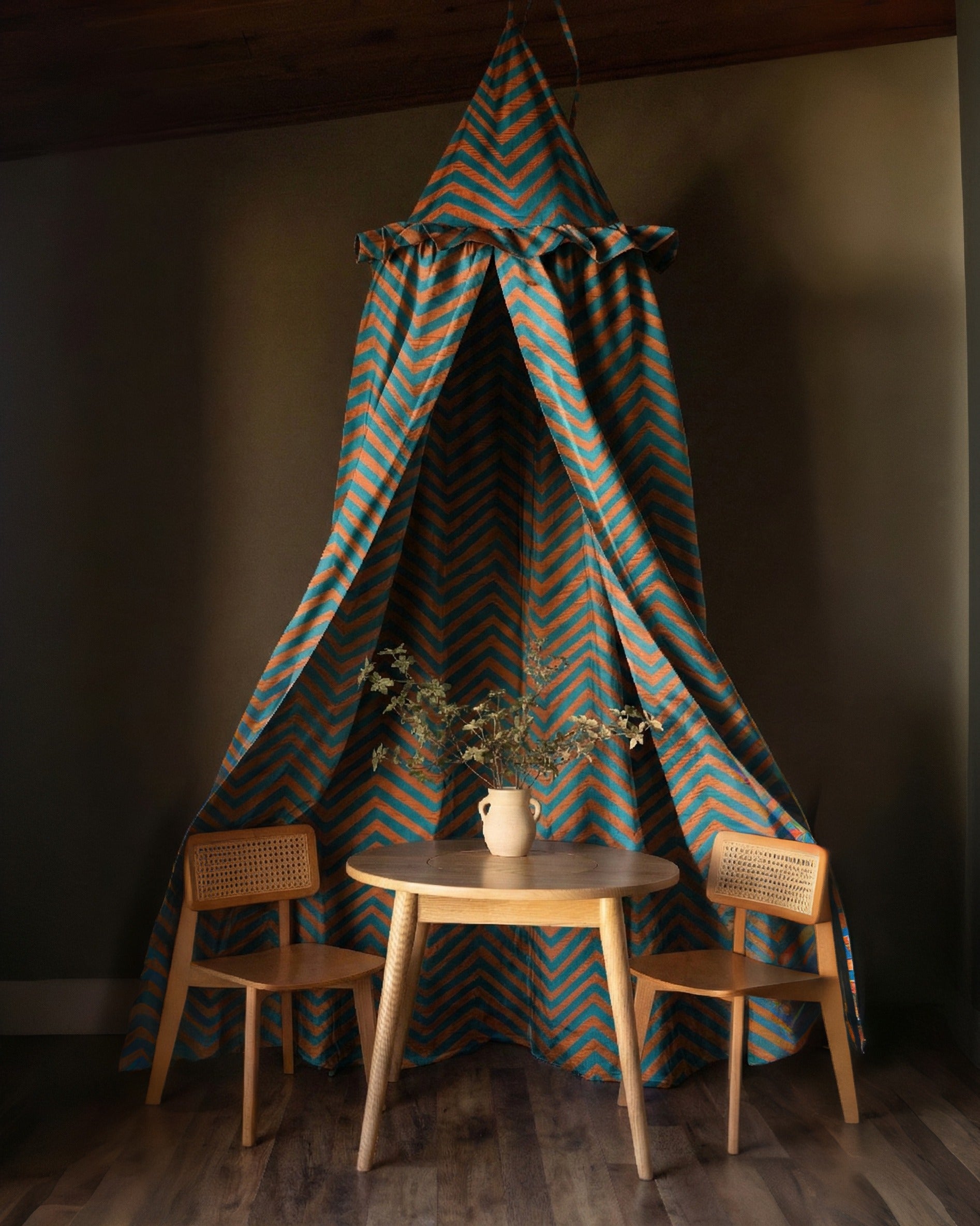 Transform your child’s playroom into a dreamy fairy-tale with the Harold silk-linen canopy. The natural linen material adds a touch of elegance and creates a cozy reading corner or a peaceful atmosphere for playtime. Elevate their space with this functional & beautiful addition.