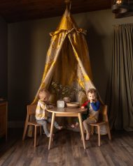 Transform your child’s playroom into a fairy-tale dream with the Imogene linen Canopy. Crafted with opulent fine silk, this canopy adds a touch of elegance and creates a serene reading nook or whimsical play area. Elevate their space with this sophisticated and stunning addition.