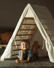 Place children in a world of imagination with this play tent! Perfect for a playroom or living room, it covers your existing Pikler Triangle and provides a space for kids to enjoy their favorite toys and stuffed animals or create their own cozy haven of blankets and pillows. Inspire little dreamers to use their imaginations and visit far-off lands, all from the comfort of home!