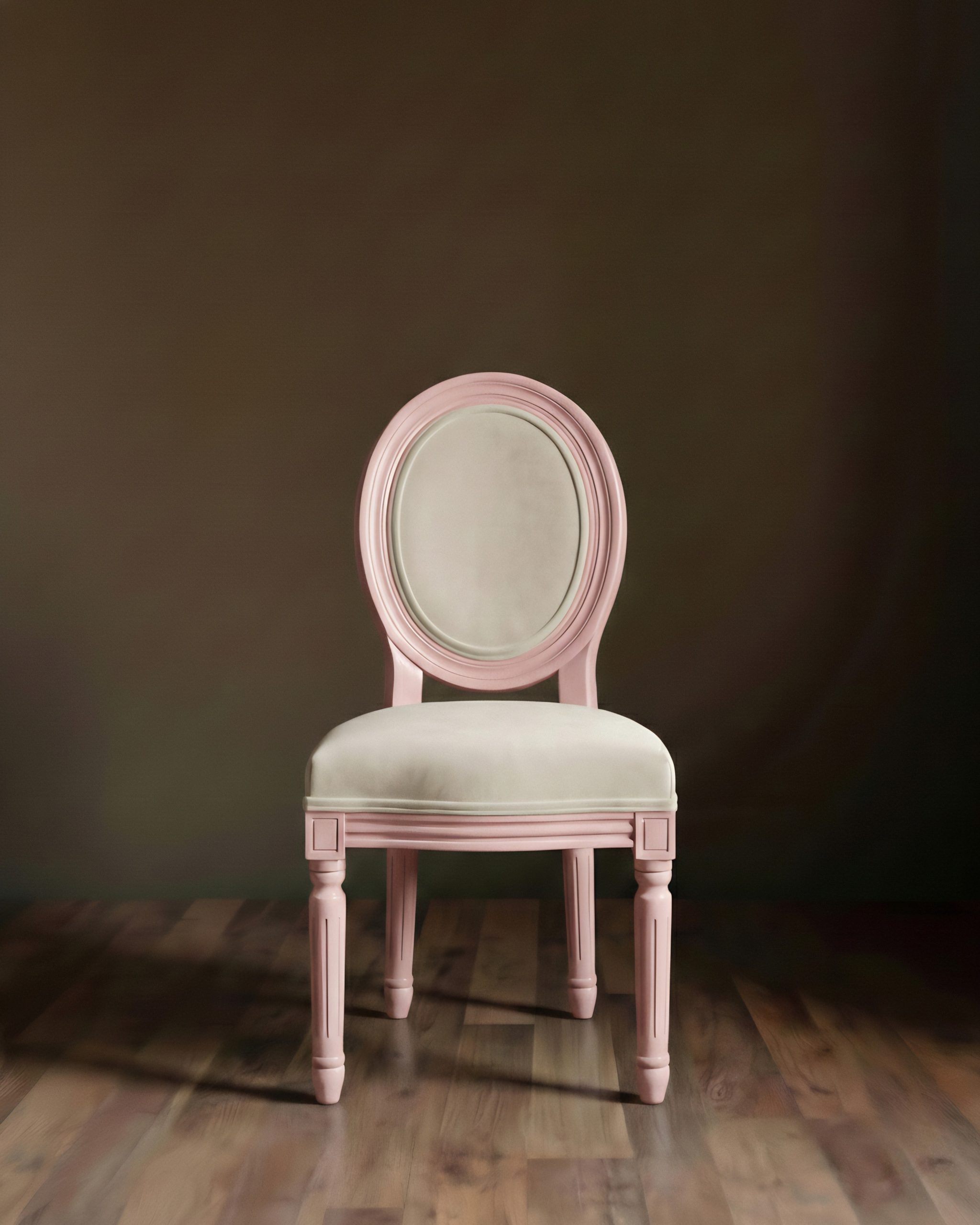 Inspired by classic French design, this chair features a timeless oval back and elegant silhouette, sized perfectly for children. The frame is constructed from high-quality solid oak and painted in a soothing Alabaster white, blush, sage and soft blue providing a sturdy foundation for years of make-believe and play and upholstered in buttery soft velvet.