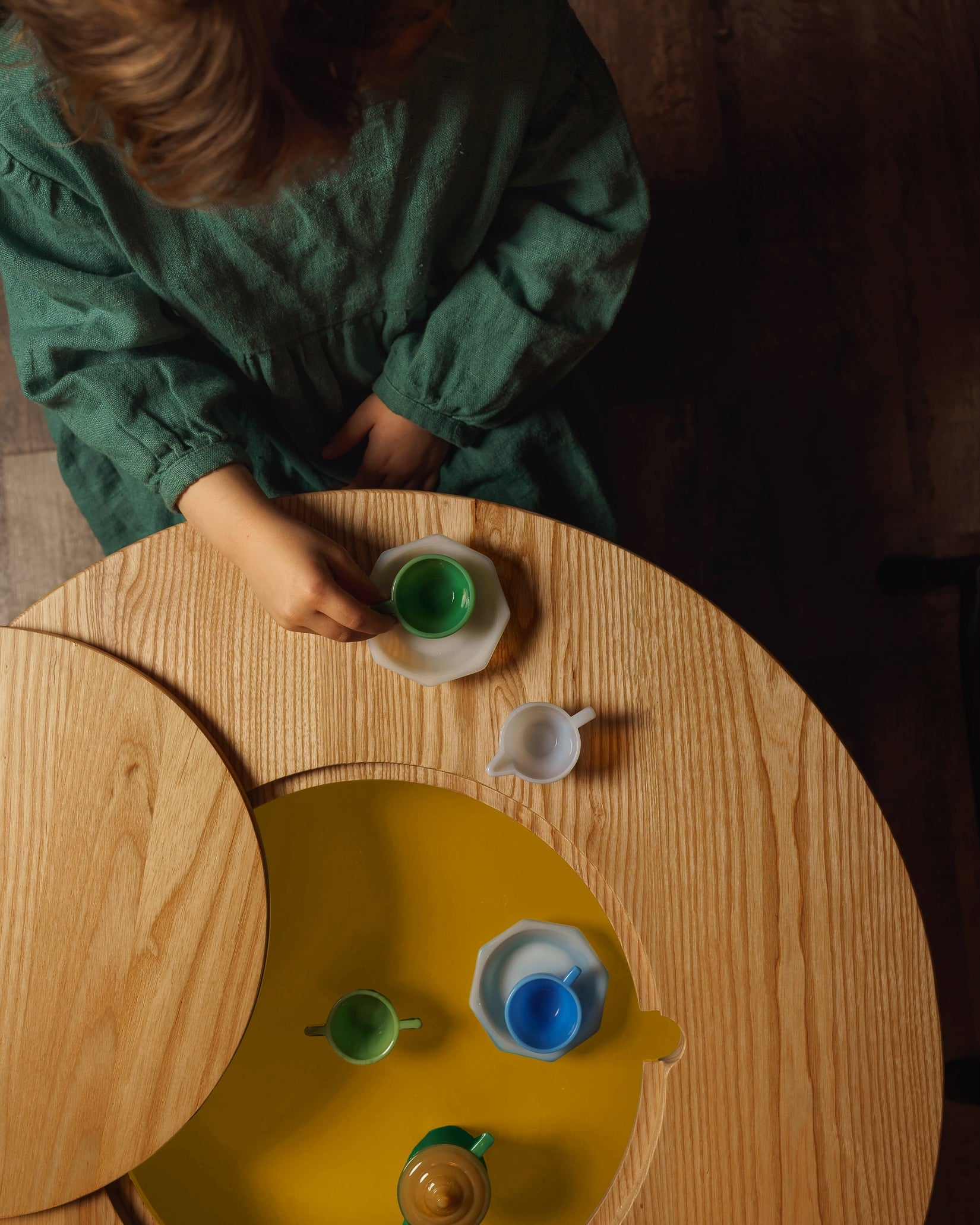 Meet the Lucille, a table that understands that the best kind of play often comes with a little bit of clutter. Designed with a timeless French silhouette, this round play table features a warm, natural wood top paired with gracefully tapered legs in a soft Alabaster White.