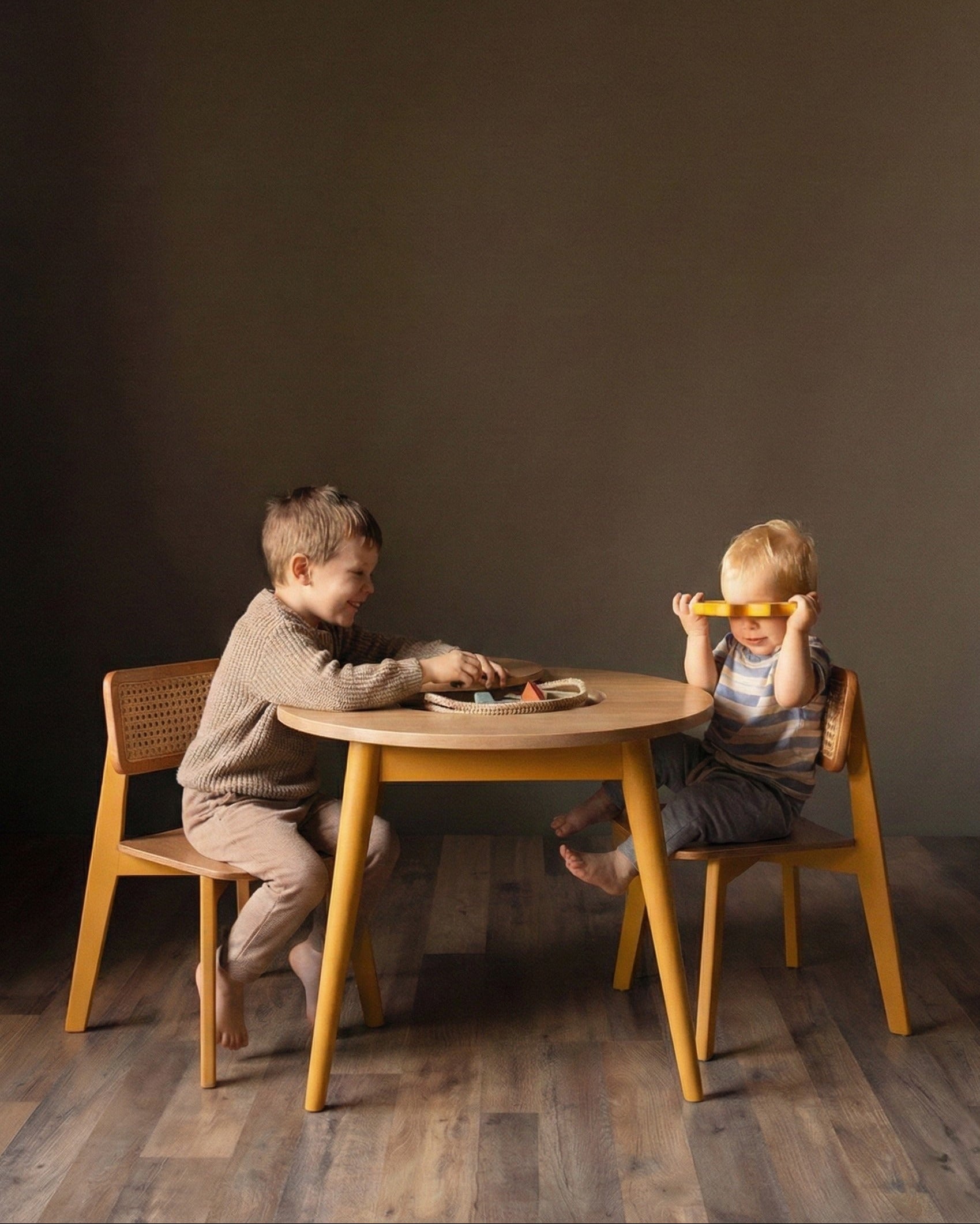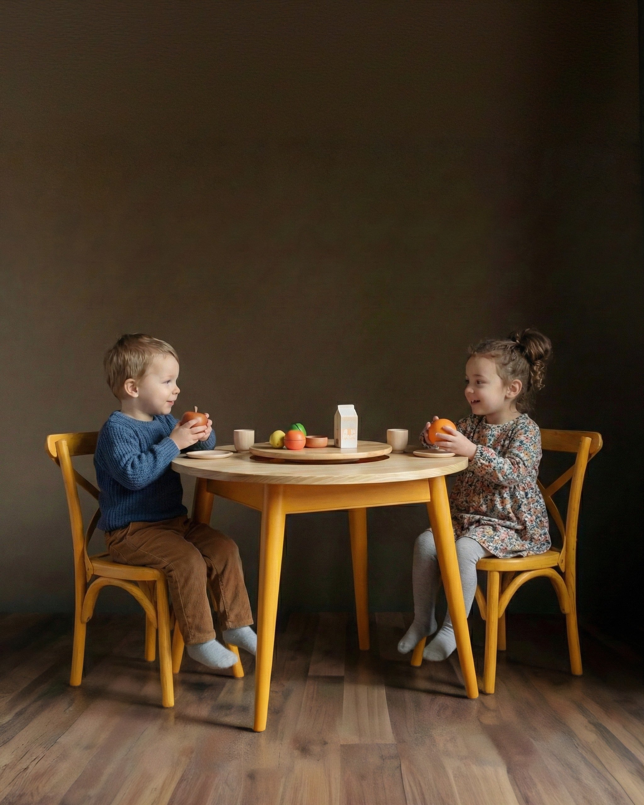 But the true magic lies in the center. Lift the matching wooden lid to reveal a hidden, 4-inch deep storage compartment—perfect for stowing away art supplies, building blocks, or tiny treasures when playtime is done. Whether it’s hosting a tea party or serving as the station for their next masterpiece, the Lucille keeps your child’s space organized and effortlessly stylish.